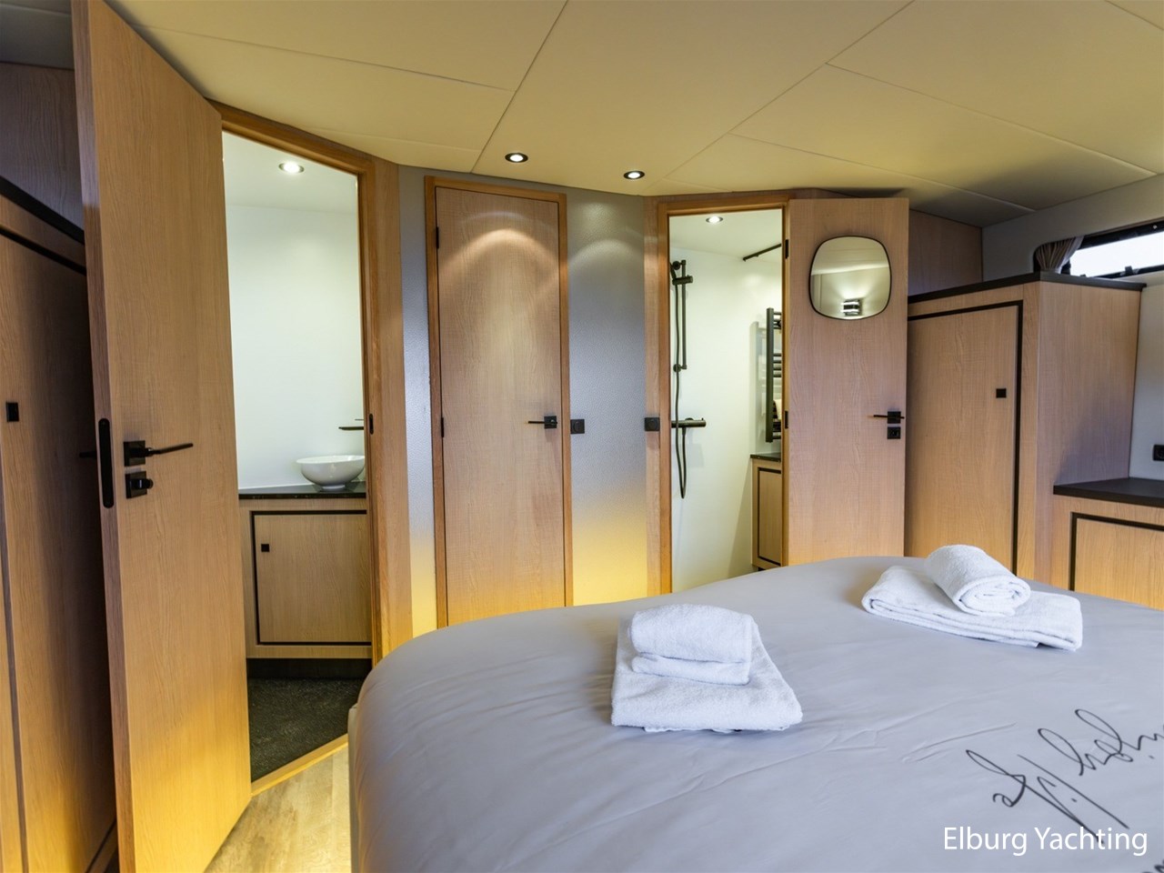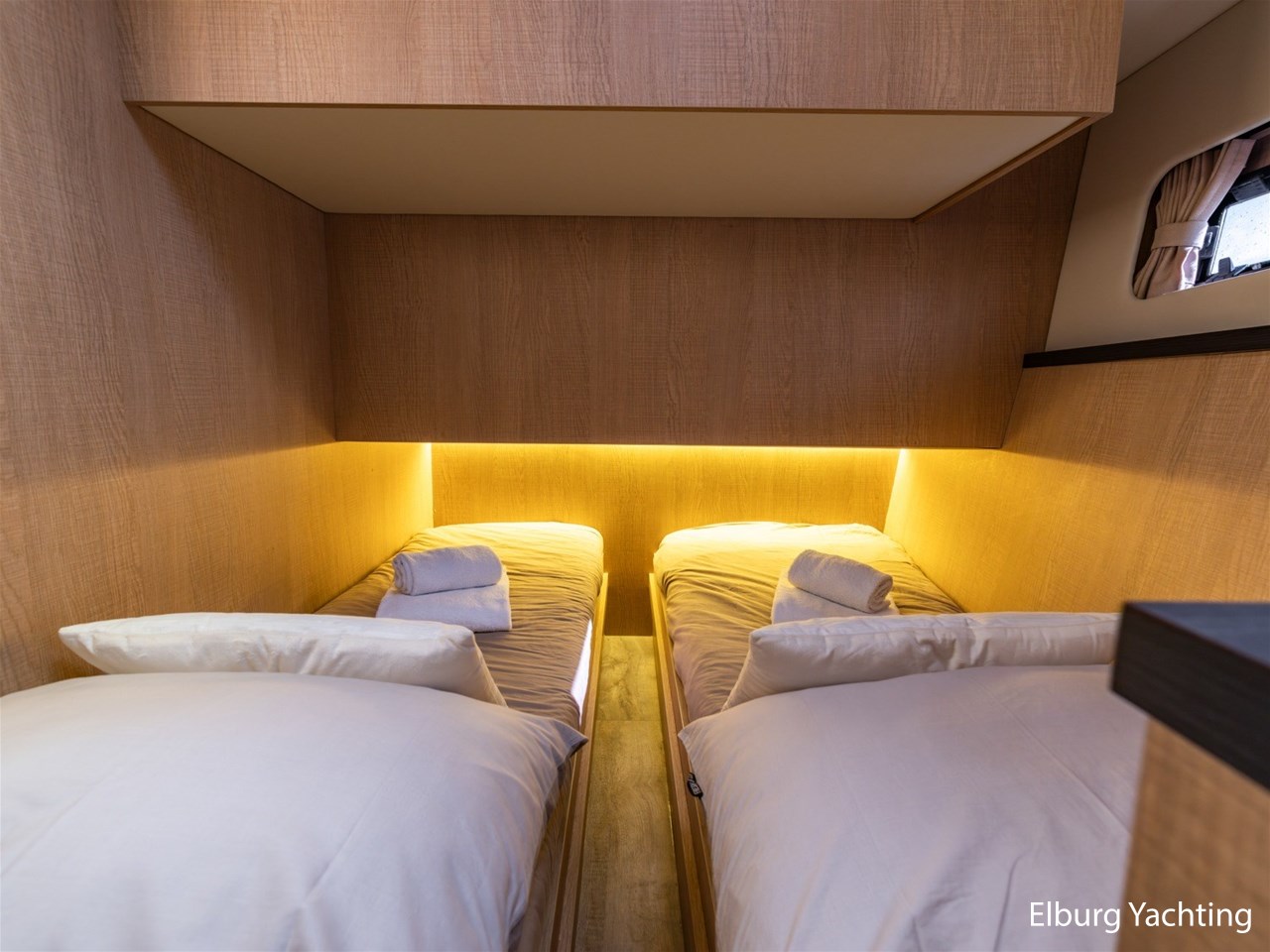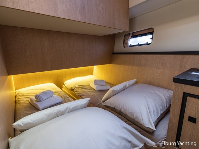 Prachtige, moderne Argos Line 13.50 - 2.0 aangeboden door haar eerste Nederlandse eigenaar. Dit prachtige exemplaar is gebouwd door de Argos Jachtwerf te Sneek en is getekend door Vripack design eveneens uit Sneek. Tijdens het bouwproces is er met veel zaken rekening gehouden, het jacht moest modern worden met een praktische indeling (waaronder drie volwaardige hutten en diverse comfortabele zitplaatsen). Tevens moest het jacht geschikt zijn voor een langer verblijf aan boord, hierdoor is er dubbelglas geplaatst met een fijne centrale verwarming. Tevens was het van belang dat het jacht een warme uitstraling kreeg, zo heeft ze de prachtige tweekleurige romp gekregen in combinatie met een uiterst modern interieur waarbij gebruikgemaakt is van uitsluitend kwaliteitsmaterialen. Het jacht is voorzien van een 'zwevende hardtop' over het achterdek waar men heerlijk uit de zon kan zitten. De salon is voorzien van twee fraaie zitgelegenheden met een praktische open keuken. Voorin zijn twee slaapgelegenheden gesitueerd met sanitair en in het achterschip is de eigenaarshut gesitueerd met eigen sanitaire ruimte. Het jacht is een korte tijd gecharterd geweest, uitsluitend aan door de werf geselecteerde VIP-klanten die ervaring hebben in de pleziervaart. Hierdoor zijn eventuele opleverpunten bekend en professioneel door de werf verholpen. De vraagprijs van het jacht is inclusief 21% btw, het jacht is ook exclusief btw te leveren. Voor vragen en/of het maken van een afspraak bent u 7 dagen per week van harte welkom bij Elburg Yachting.