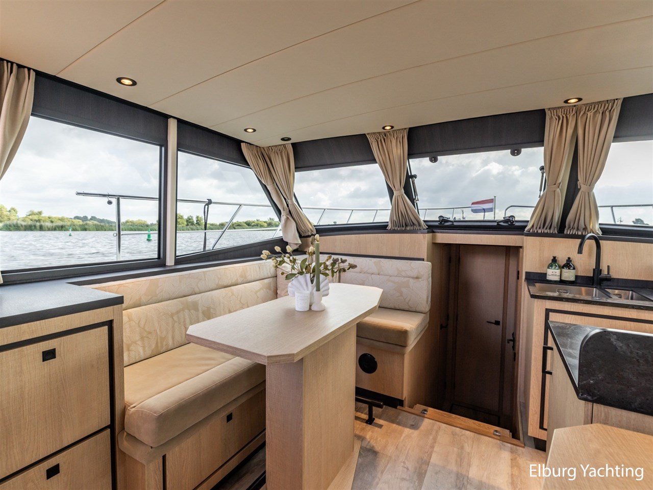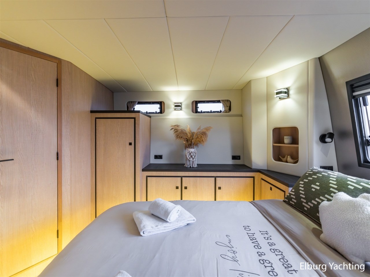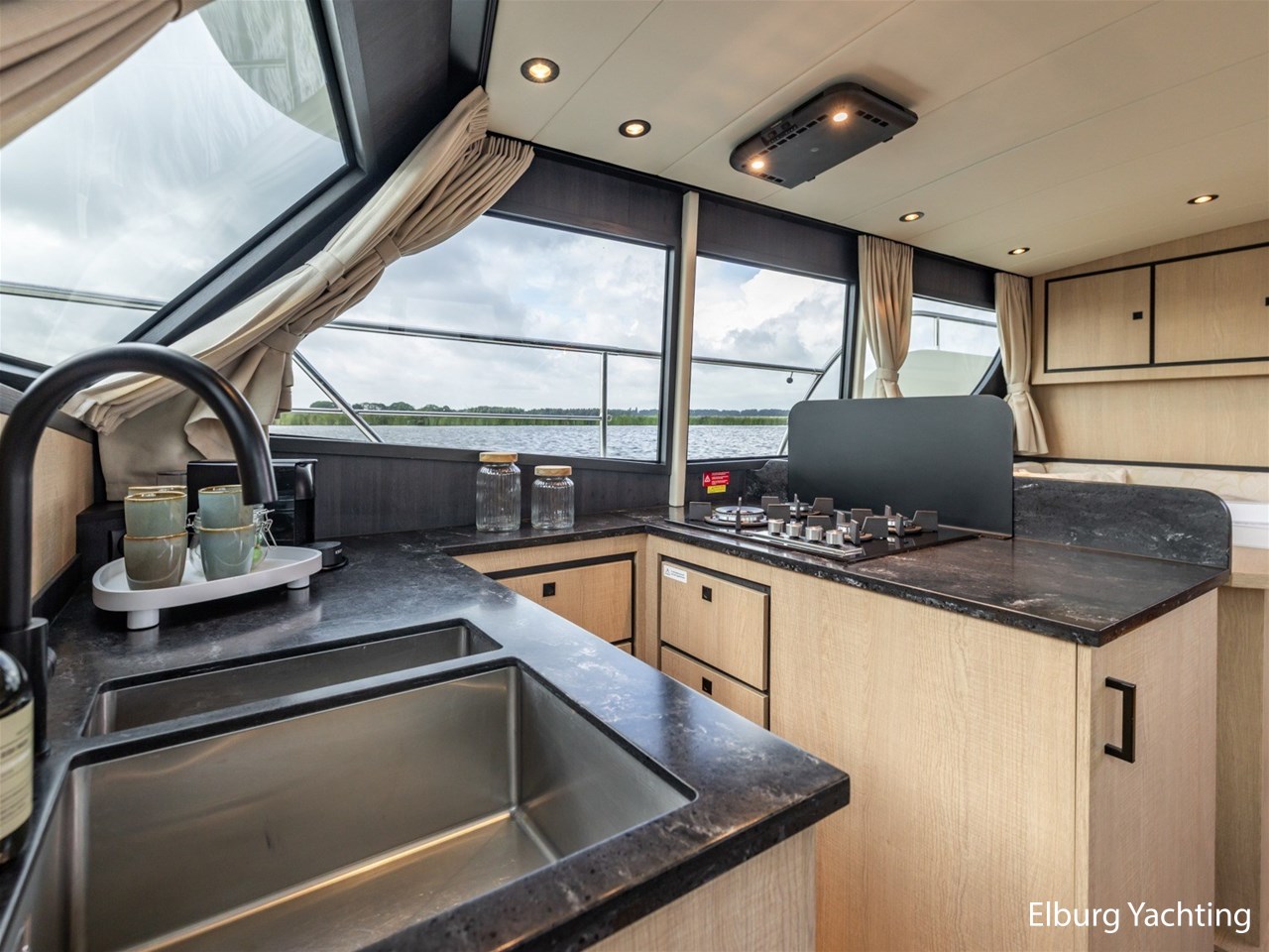 Prachtige, moderne Argos Line 13.50 - 2.0 aangeboden door haar eerste Nederlandse eigenaar. Dit prachtige exemplaar is gebouwd door de Argos Jachtwerf te Sneek en is getekend door Vripack design eveneens uit Sneek. Tijdens het bouwproces is er met veel zaken rekening gehouden, het jacht moest modern worden met een praktische indeling (waaronder drie volwaardige hutten en diverse comfortabele zitplaatsen). Tevens moest het jacht geschikt zijn voor een langer verblijf aan boord, hierdoor is er dubbelglas geplaatst met een fijne centrale verwarming. Tevens was het van belang dat het jacht een warme uitstraling kreeg, zo heeft ze de prachtige tweekleurige romp gekregen in combinatie met een uiterst modern interieur waarbij gebruikgemaakt is van uitsluitend kwaliteitsmaterialen. Het jacht is voorzien van een 'zwevende hardtop' over het achterdek waar men heerlijk uit de zon kan zitten. De salon is voorzien van twee fraaie zitgelegenheden met een praktische open keuken. Voorin zijn twee slaapgelegenheden gesitueerd met sanitair en in het achterschip is de eigenaarshut gesitueerd met eigen sanitaire ruimte. Het jacht is een korte tijd gecharterd geweest, uitsluitend aan door de werf geselecteerde VIP-klanten die ervaring hebben in de pleziervaart. Hierdoor zijn eventuele opleverpunten bekend en professioneel door de werf verholpen. De vraagprijs van het jacht is inclusief 21% btw, het jacht is ook exclusief btw te leveren. Voor vragen en/of het maken van een afspraak bent u 7 dagen per week van harte welkom bij Elburg Yachting.