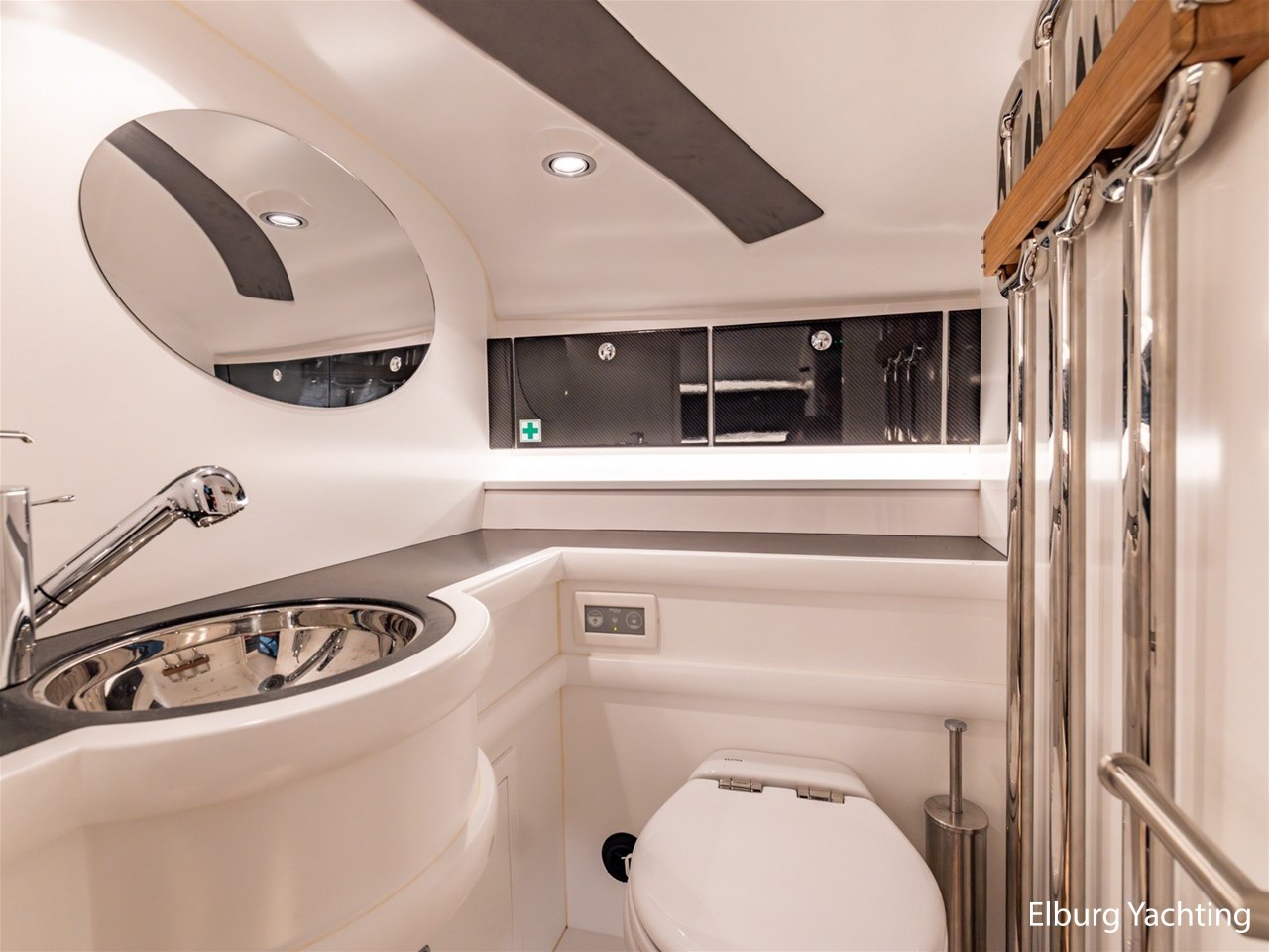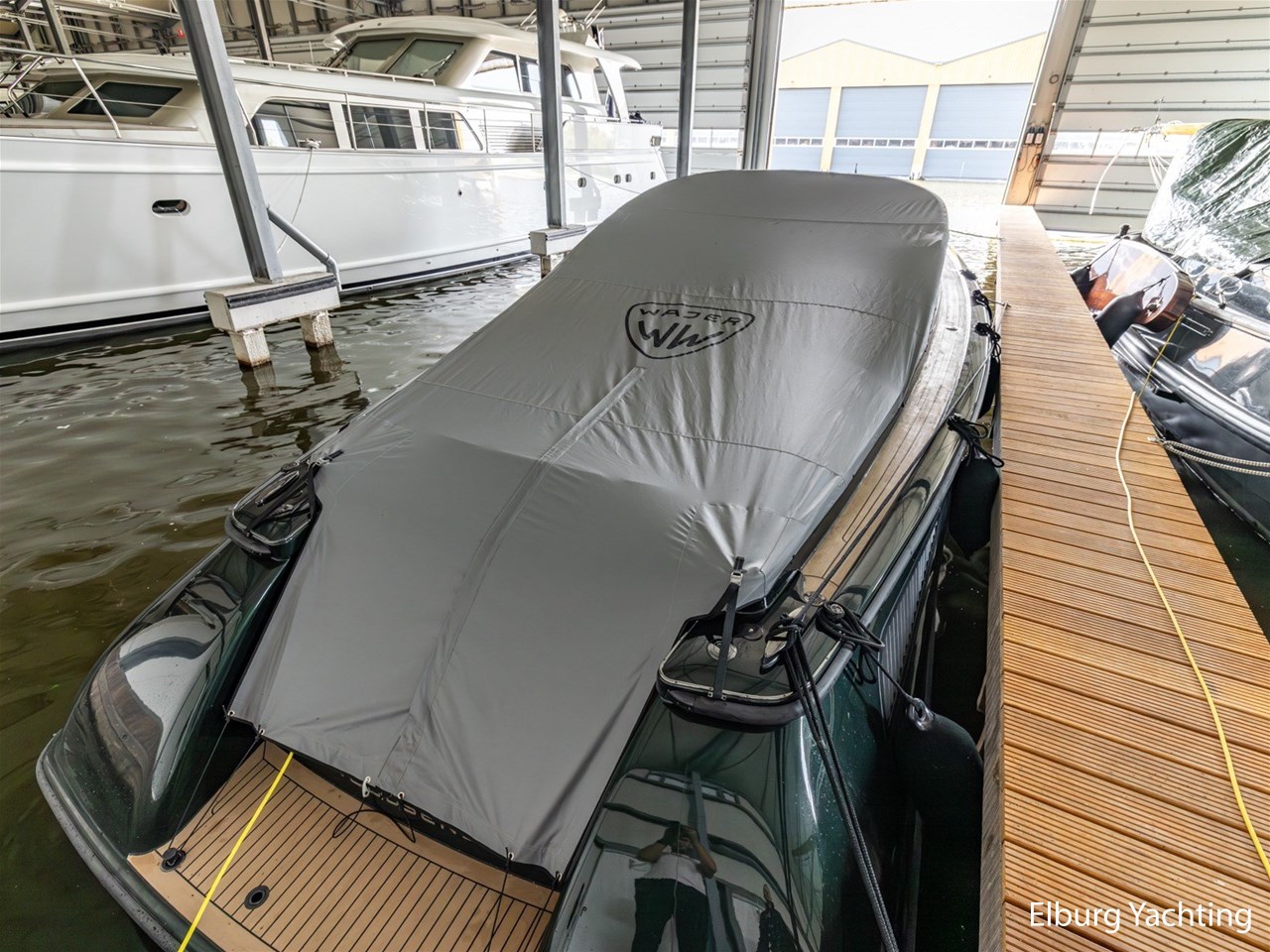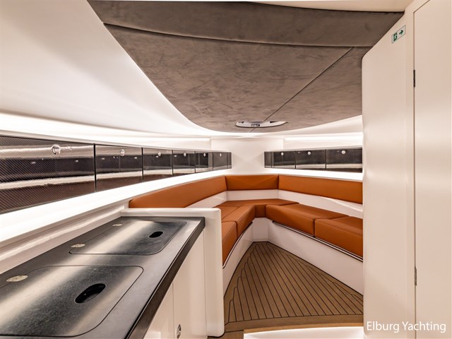 Prachtig uitgevoerde Wajer 38 met de IPS600 topmotorisering van Volvo Penta. Deze Wajer 38 is begin 2025 volledig door Wajer Yachts herspoten in de kleur Bentley Cumbrian Green, de binnen- en buitenbekleding is vernieuwd, er is een uitneembaar ligbed in het achterdek toegevoegd en de zwemtrap is vergemakkelijkt met een uitneembare handreling. In het oog springende elementen is het carbon fiber afgewerkte exterieur design, zwart geanodiseerd r.v.s. dekbeslag, Fusion audio met 4 versterkers / 8 speakers / 2 woofers, onderwaterverlichting, Webasto verwarming en airconditioning. Verder is deze Wajer 38 uitgerust met: dimbare sfeerverlichting in de kuip en kajuit, zonnebed op het voordek met afdekhoes, ankerkluis met bergruimte en water aansluiting, inklapbare fenderogen en bolders, wegneembare r.v.s. handgeleiders voor op- en afstappen van boord, klapbare voorruit, multifunctioneel display voor bediening boordsystemen en verlichting, drie keer Stidd stoelen met X-craft vering, afneembare zwarte biminitop over de stuurstand, volledige Wajer afdekhoes over de kuip. De kuipbank kan gebruikt worden in U-opstelling, volledig zonnebed of door het wegnemen van het middenstuk wordt er een volledige doorloop gecreëerd naar het zwemplateau. Topsnelheid ca. 45 knopen, kruissnelheid ca. 25 knopen. Voor vragen en/of het maken van een afspraak bent u 7 dagen per week van harte welkom bij Elburg Yachting.