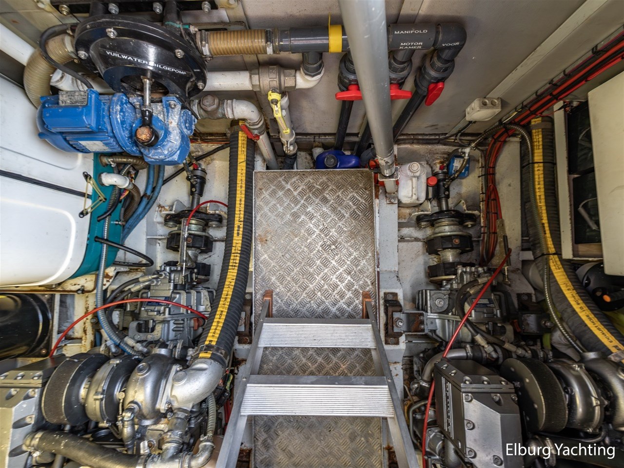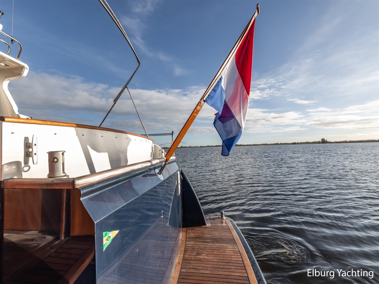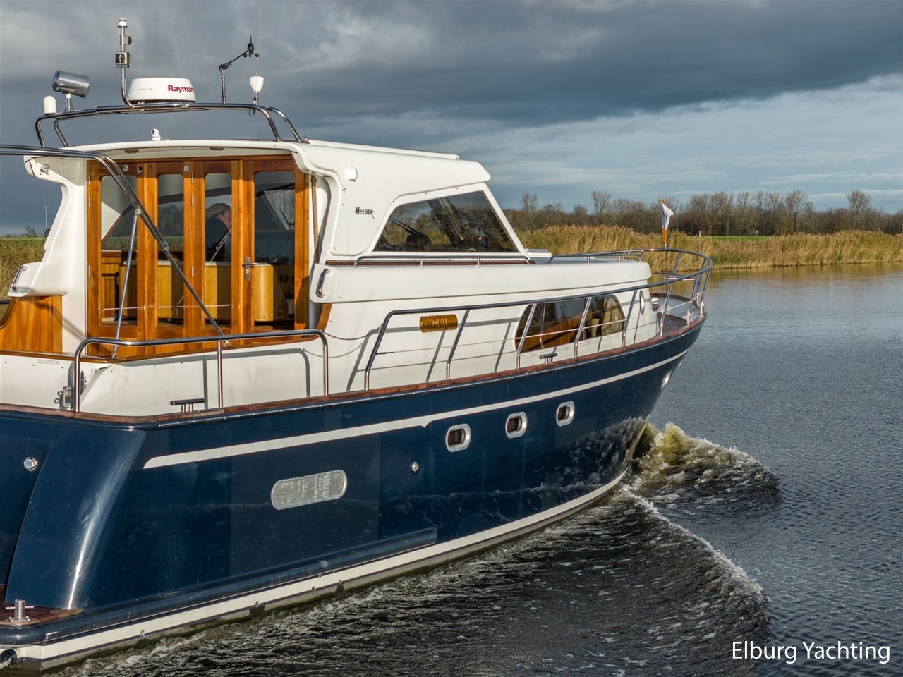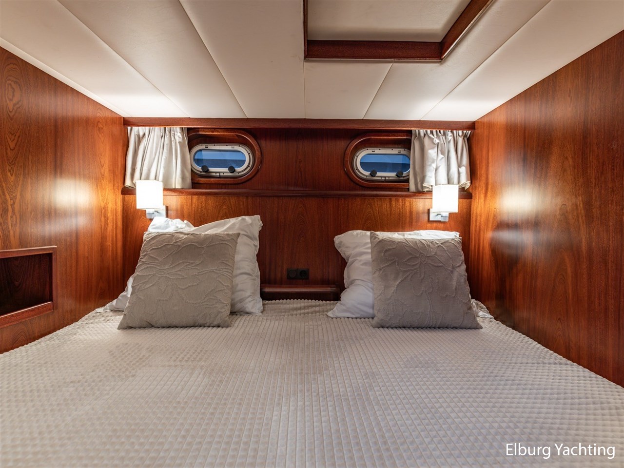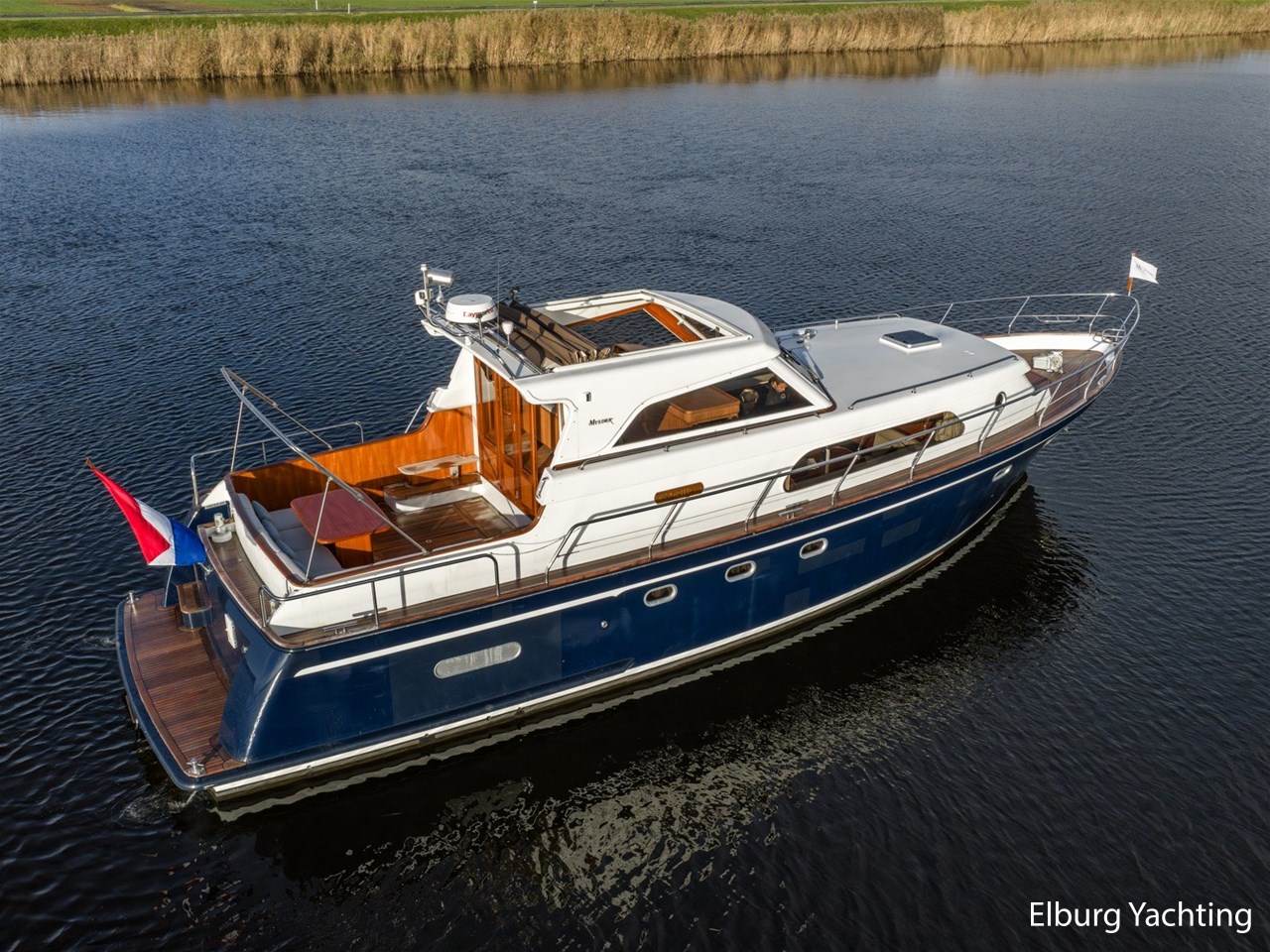 De Mulder Favorite 46 is een elegant en degelijk motorjacht, ontworpen door Guido de Groot en gebouwd door de gerenommeerde werf Mulder Shipyard. Dit jacht straalt tijdloze klasse uit en is ontworpen voor comfortabel en stijlvol verblijf aan boord. De ruime open kuip staat in directe verbinding met de salon en het stuurhuis, wat zorgt voor een open en lichte leefruimte. Het interieur is klassiek uitgevoerd in mahoniehout en voorzien van lichte, recent vernieuwde stoffering. Dankzij de twee hutten, elk met eigen sanitair, is het schip uitstekend geschikt voor langer verblijf aan boord. Tussen 2021 en 2025 is er breed geïnvesteerd in techniek, afwerking en uitrusting. Het teakdek is in 2023-2024 volledig vernieuwd door Jonker Jachtbouw. Het onderwaterschip is in diezelfde periode gestraald en behandeld met nieuwe antifouling. In 2023 is groot motoronderhoud uitgevoerd, inclusief de plaatsing van twee nieuwe turbo’s. In 2024 is aanvullende service aan de motoren uitgevoerd. Het jacht is voorzien van schroefassen en vierblads schroeven. De generator is in mei 2025 geserviced. De kruissnelheid bedraagt ca. 8 knopen bij 2500 rpm, met een maximale snelheid van ca. 11 knopen bij 3300 rpm. De economische vaarsnelheid ligt rond de ca. 7 knopen bij 2200 rpm. Qua uitrusting is het jacht voorzien van een uitgebreid en recent vernieuwd Raymarine-navigatiesysteem met onder andere twee Axiom 12” displays, radar, AIS, GPS, autopilot met afstandsbediening, VHF, windmeter en een camera op de radarboog. In 2023-2024 is er een nieuwe hekschroef met afstandsbediening aangebracht, naast de bestaande boegschroef. De kussens op het voordek zijn aanwezig en in 2023-2024 vernieuwd. Verder is het jacht uitgerust met RVS fenderhouders en een zoeklicht. Volledige documentatie van de werkzaamheden is op aanvraag beschikbaar. Voor vragen en/of het maken van een afspraak bent u 7 dagen per week van harte welkom bij Elburg Yachting.