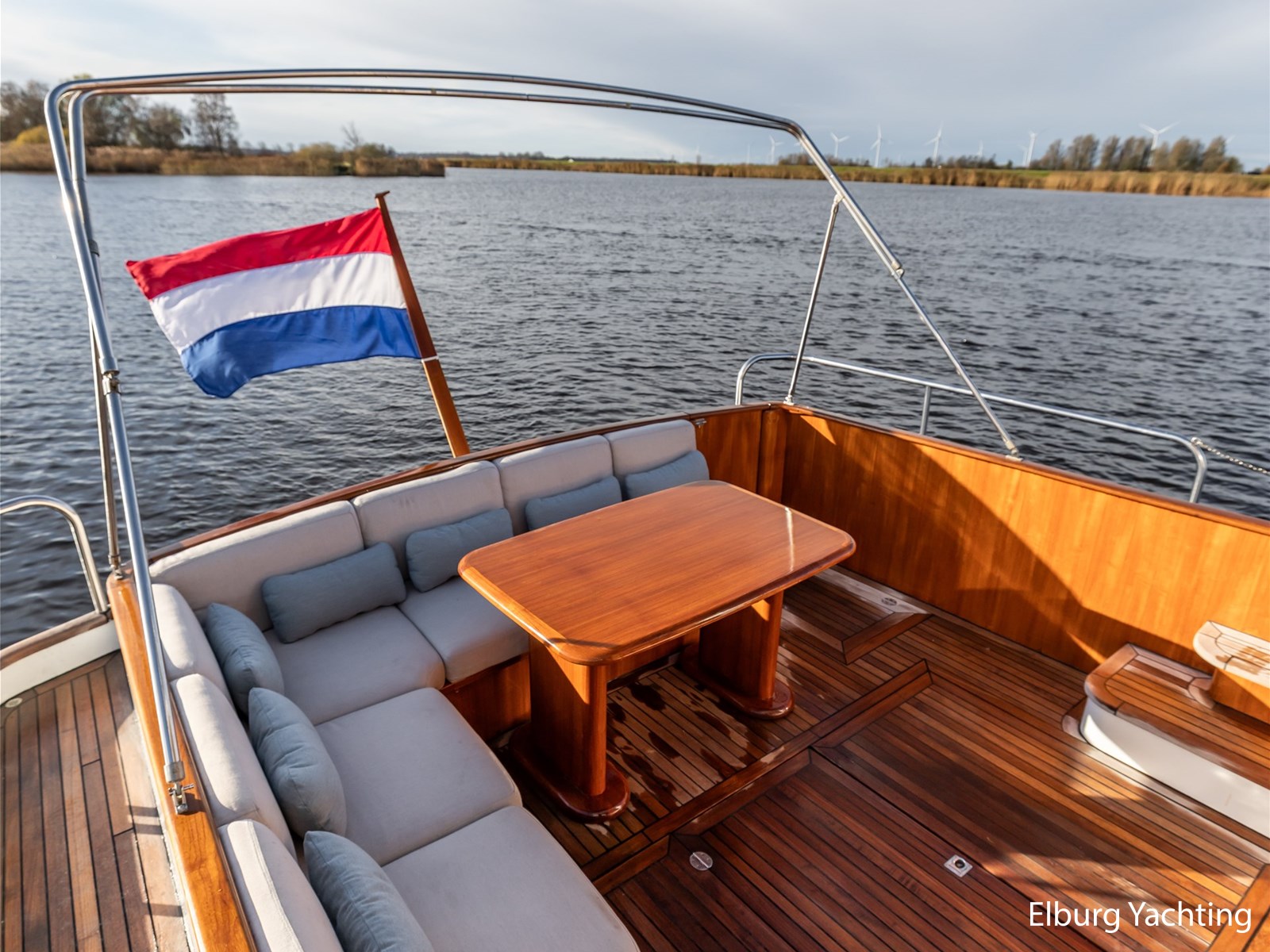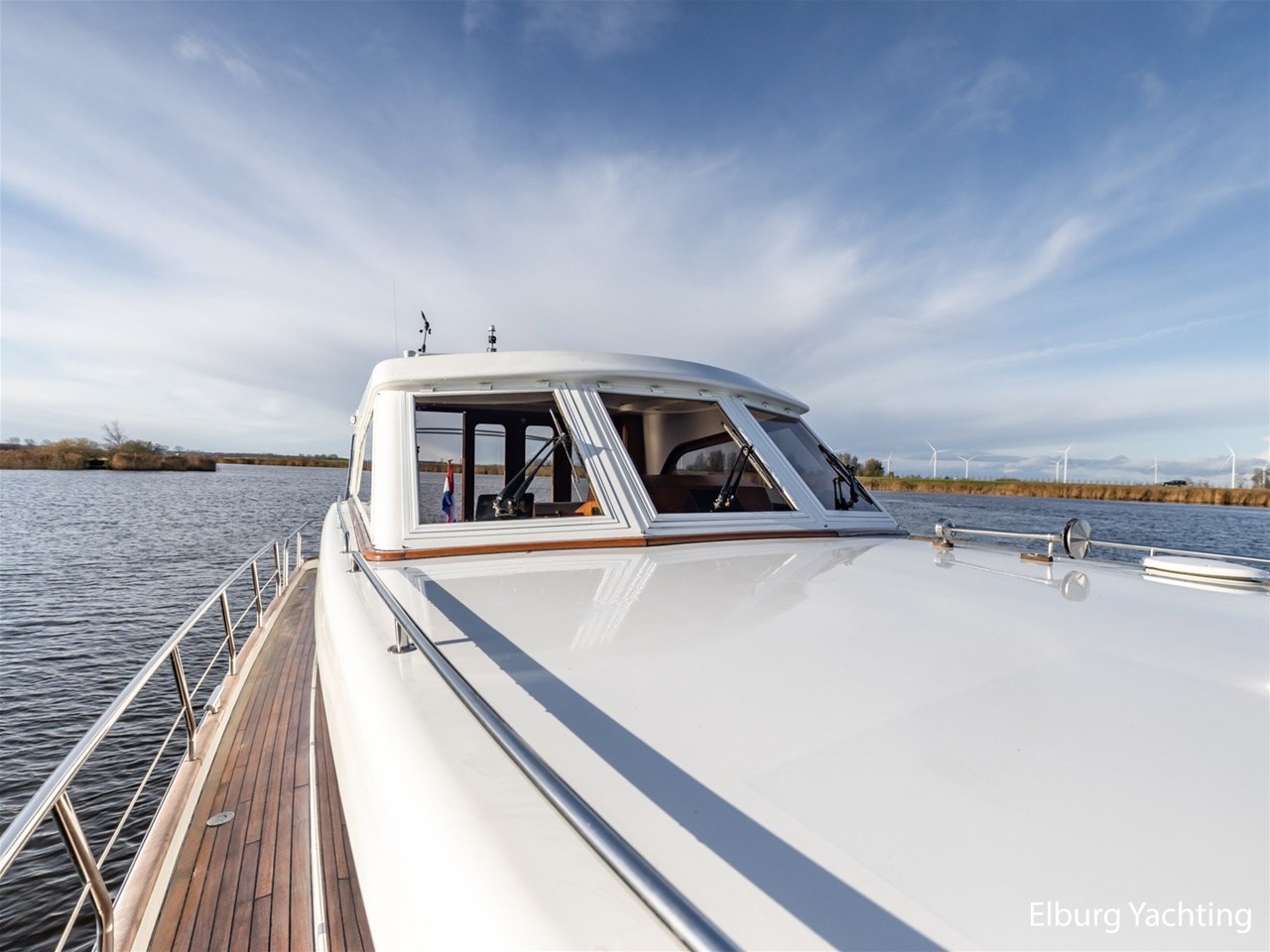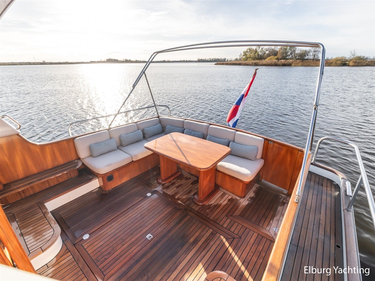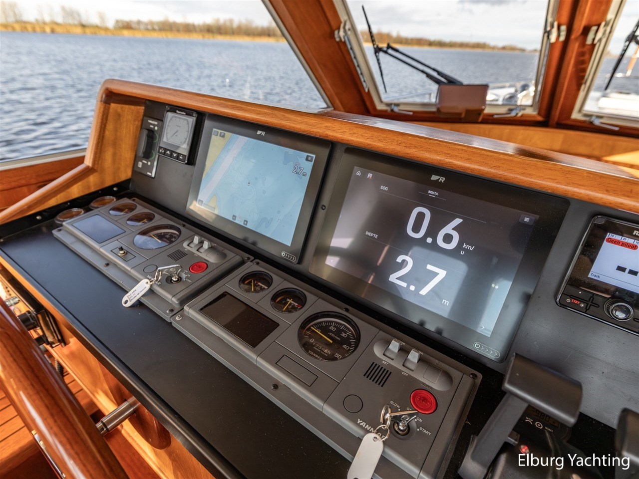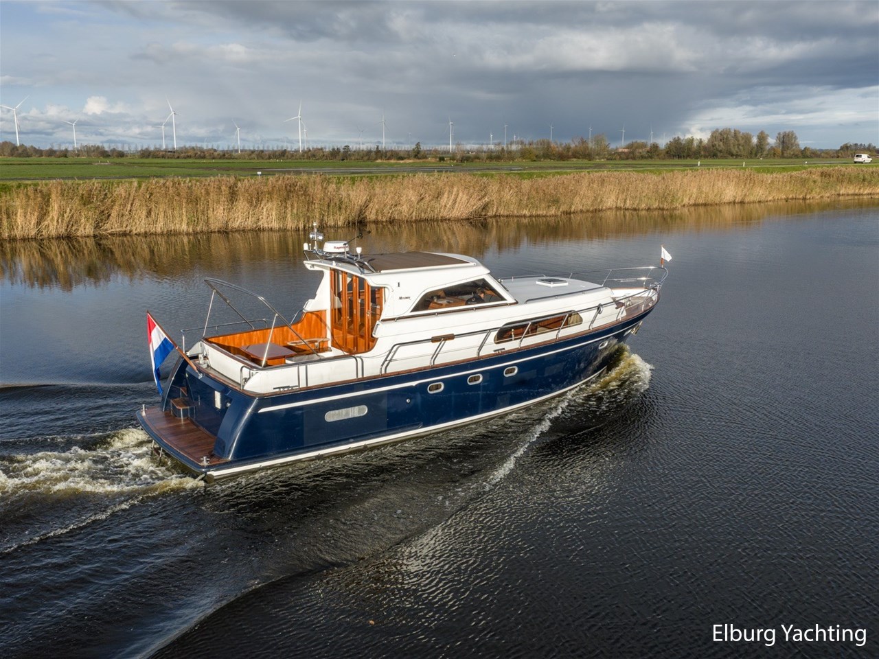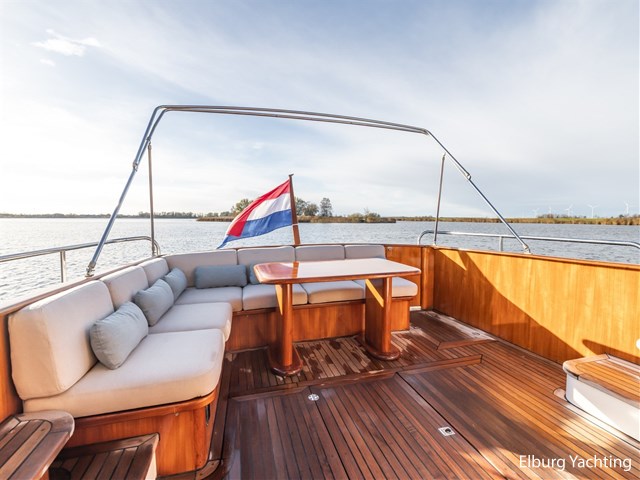 De Mulder Favorite 46 is een elegant en degelijk motorjacht, ontworpen door Guido de Groot en gebouwd door de gerenommeerde werf Mulder Shipyard. Dit jacht straalt tijdloze klasse uit en is ontworpen voor comfortabel en stijlvol verblijf aan boord. De ruime open kuip staat in directe verbinding met de salon en het stuurhuis, wat zorgt voor een open en lichte leefruimte. Het interieur is klassiek uitgevoerd in mahoniehout en voorzien van lichte, recent vernieuwde stoffering. Dankzij de twee hutten, elk met eigen sanitair, is het schip uitstekend geschikt voor langer verblijf aan boord. Tussen 2021 en 2025 is er breed geïnvesteerd in techniek, afwerking en uitrusting. Het teakdek is in 2023-2024 volledig vernieuwd door Jonker Jachtbouw. Het onderwaterschip is in diezelfde periode gestraald en behandeld met nieuwe antifouling. In 2023 is groot motoronderhoud uitgevoerd, inclusief de plaatsing van twee nieuwe turbo’s. In 2024 is aanvullende service aan de motoren uitgevoerd. Het jacht is voorzien van schroefassen en vierblads schroeven. De generator is in mei 2025 geserviced. De kruissnelheid bedraagt ca. 8 knopen bij 2500 rpm, met een maximale snelheid van ca. 11 knopen bij 3300 rpm. De economische vaarsnelheid ligt rond de ca. 7 knopen bij 2200 rpm. Qua uitrusting is het jacht voorzien van een uitgebreid en recent vernieuwd Raymarine-navigatiesysteem met onder andere twee Axiom 12” displays, radar, AIS, GPS, autopilot met afstandsbediening, VHF, windmeter en een camera op de radarboog. In 2023-2024 is er een nieuwe hekschroef met afstandsbediening aangebracht, naast de bestaande boegschroef. De kussens op het voordek zijn aanwezig en in 2023-2024 vernieuwd. Verder is het jacht uitgerust met RVS fenderhouders en een zoeklicht. Volledige documentatie van de werkzaamheden is op aanvraag beschikbaar. Voor vragen en/of het maken van een afspraak bent u 7 dagen per week van harte welkom bij Elburg Yachting.
