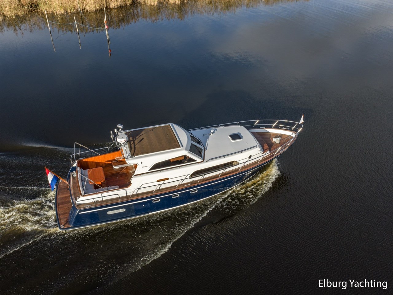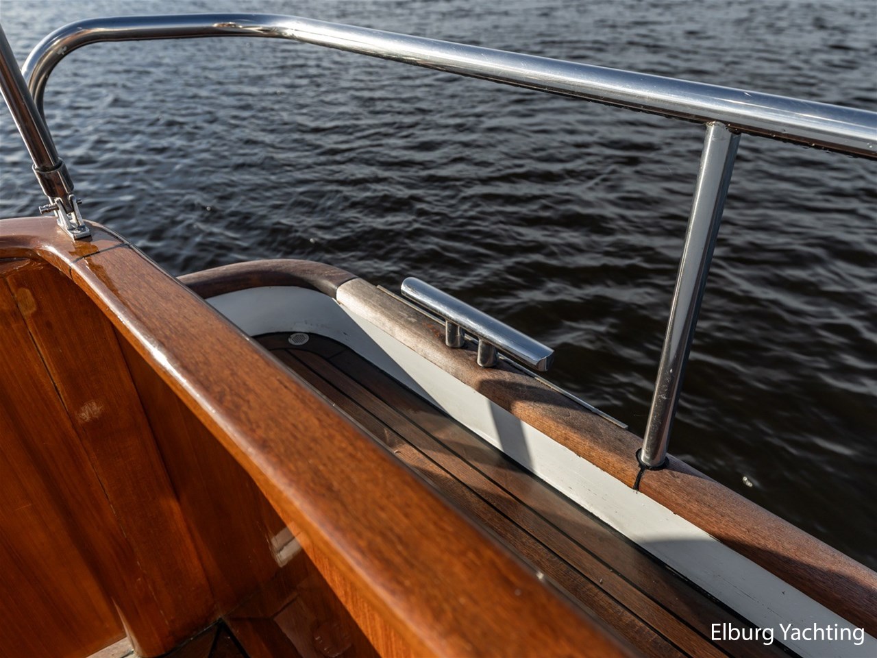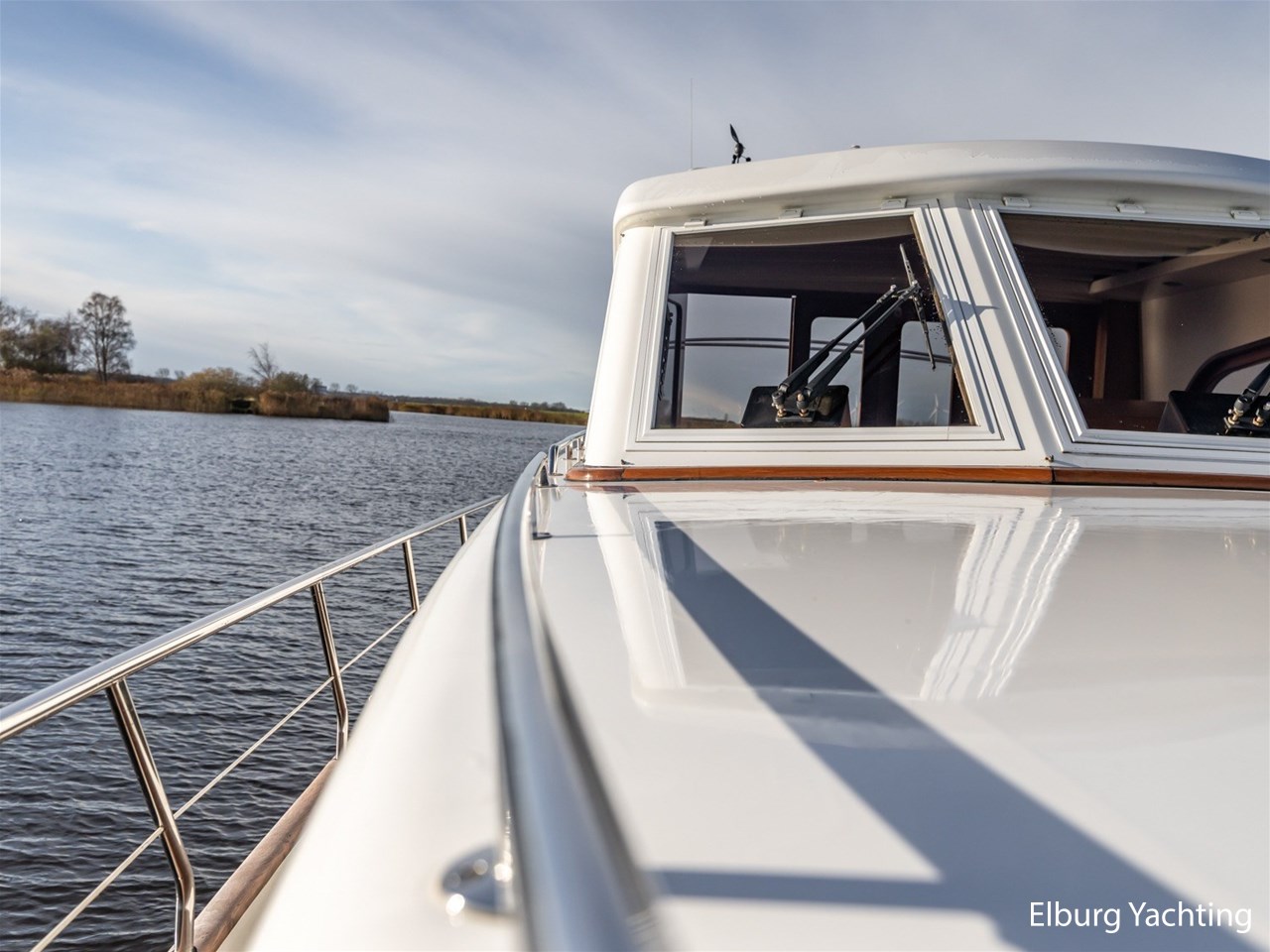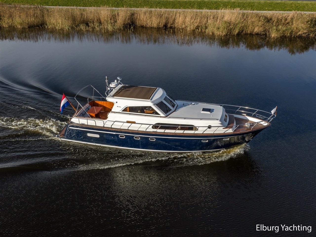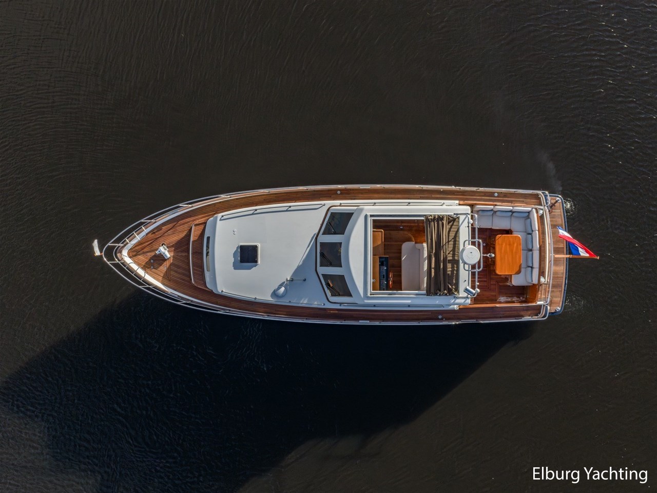 De Mulder Favorite 46 is een elegant en degelijk motorjacht, ontworpen door Guido de Groot en gebouwd door de gerenommeerde werf Mulder Shipyard. Dit jacht straalt tijdloze klasse uit en is ontworpen voor comfortabel en stijlvol verblijf aan boord. De ruime open kuip staat in directe verbinding met de salon en het stuurhuis, wat zorgt voor een open en lichte leefruimte. Het interieur is klassiek uitgevoerd in mahoniehout en voorzien van lichte, recent vernieuwde stoffering. Dankzij de twee hutten, elk met eigen sanitair, is het schip uitstekend geschikt voor langer verblijf aan boord. Tussen 2021 en 2025 is er breed geïnvesteerd in techniek, afwerking en uitrusting. Het teakdek is in 2023-2024 volledig vernieuwd door Jonker Jachtbouw. Het onderwaterschip is in diezelfde periode gestraald en behandeld met nieuwe antifouling. In 2023 is groot motoronderhoud uitgevoerd, inclusief de plaatsing van twee nieuwe turbo’s. In 2024 is aanvullende service aan de motoren uitgevoerd. Het jacht is voorzien van schroefassen en vierblads schroeven. De generator is in mei 2025 geserviced. De kruissnelheid bedraagt ca. 8 knopen bij 2500 rpm, met een maximale snelheid van ca. 11 knopen bij 3300 rpm. De economische vaarsnelheid ligt rond de ca. 7 knopen bij 2200 rpm. Qua uitrusting is het jacht voorzien van een uitgebreid en recent vernieuwd Raymarine-navigatiesysteem met onder andere twee Axiom 12” displays, radar, AIS, GPS, autopilot met afstandsbediening, VHF, windmeter en een camera op de radarboog. In 2023-2024 is er een nieuwe hekschroef met afstandsbediening aangebracht, naast de bestaande boegschroef. De kussens op het voordek zijn aanwezig en in 2023-2024 vernieuwd. Verder is het jacht uitgerust met RVS fenderhouders en een zoeklicht. Volledige documentatie van de werkzaamheden is op aanvraag beschikbaar. Voor vragen en/of het maken van een afspraak bent u 7 dagen per week van harte welkom bij Elburg Yachting.