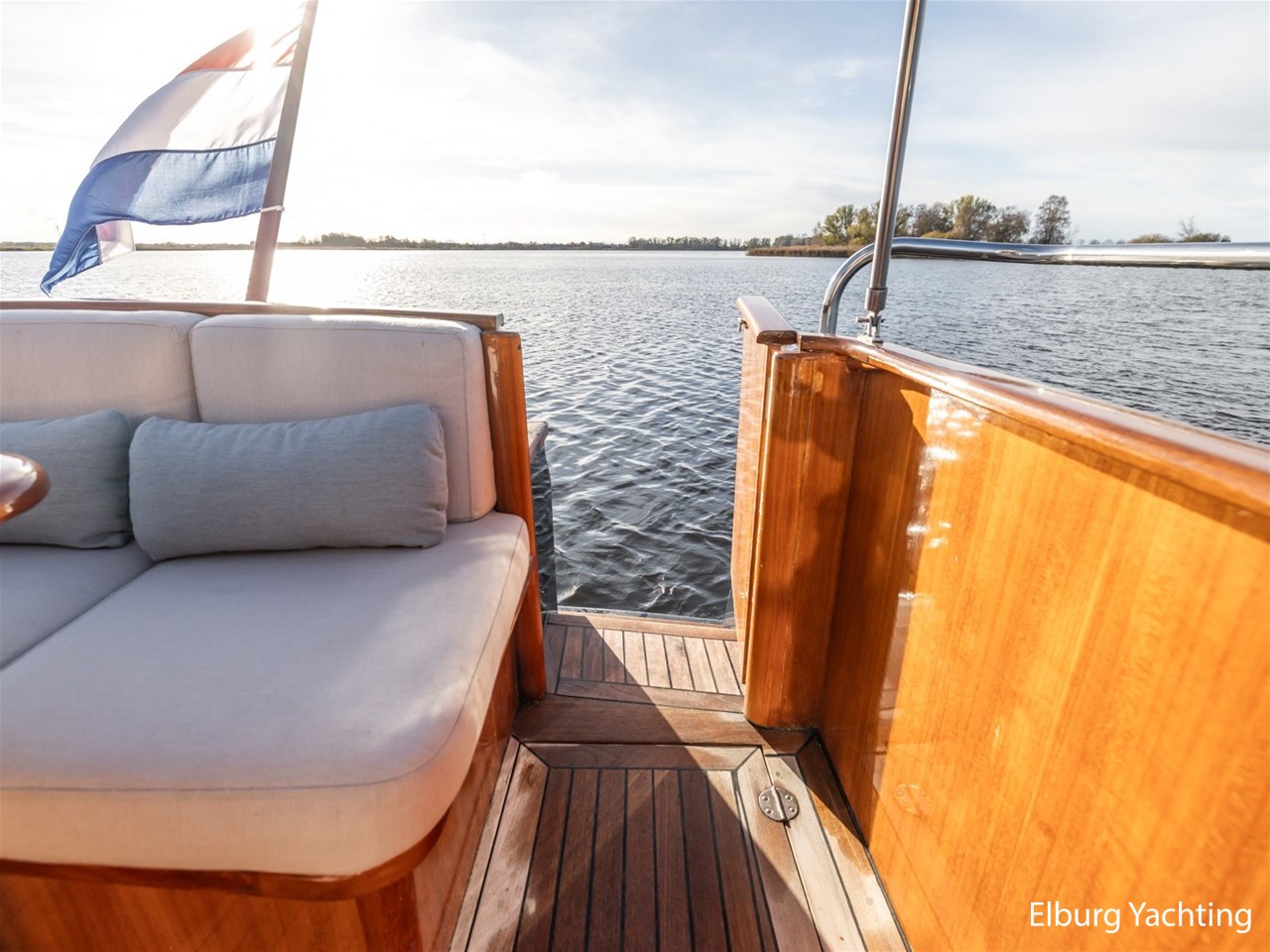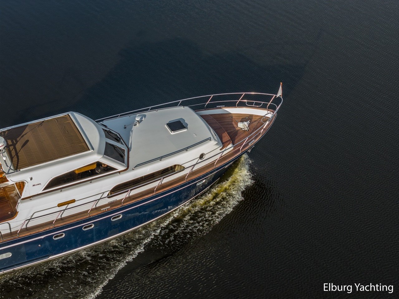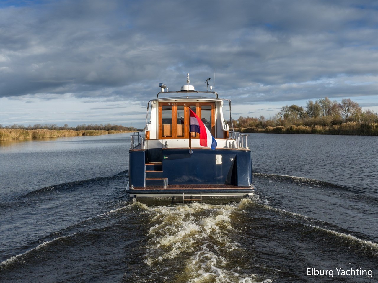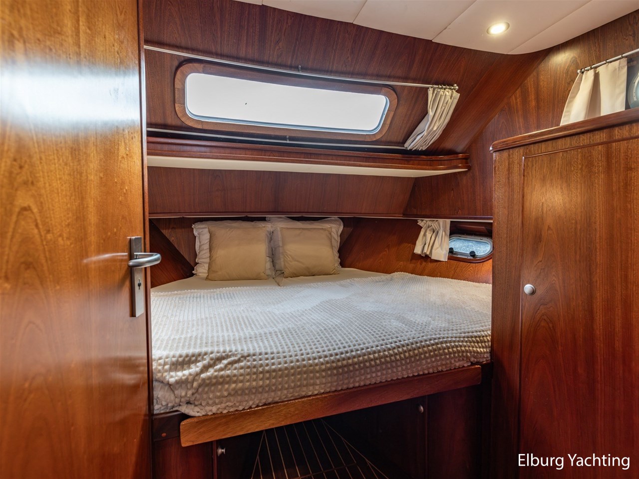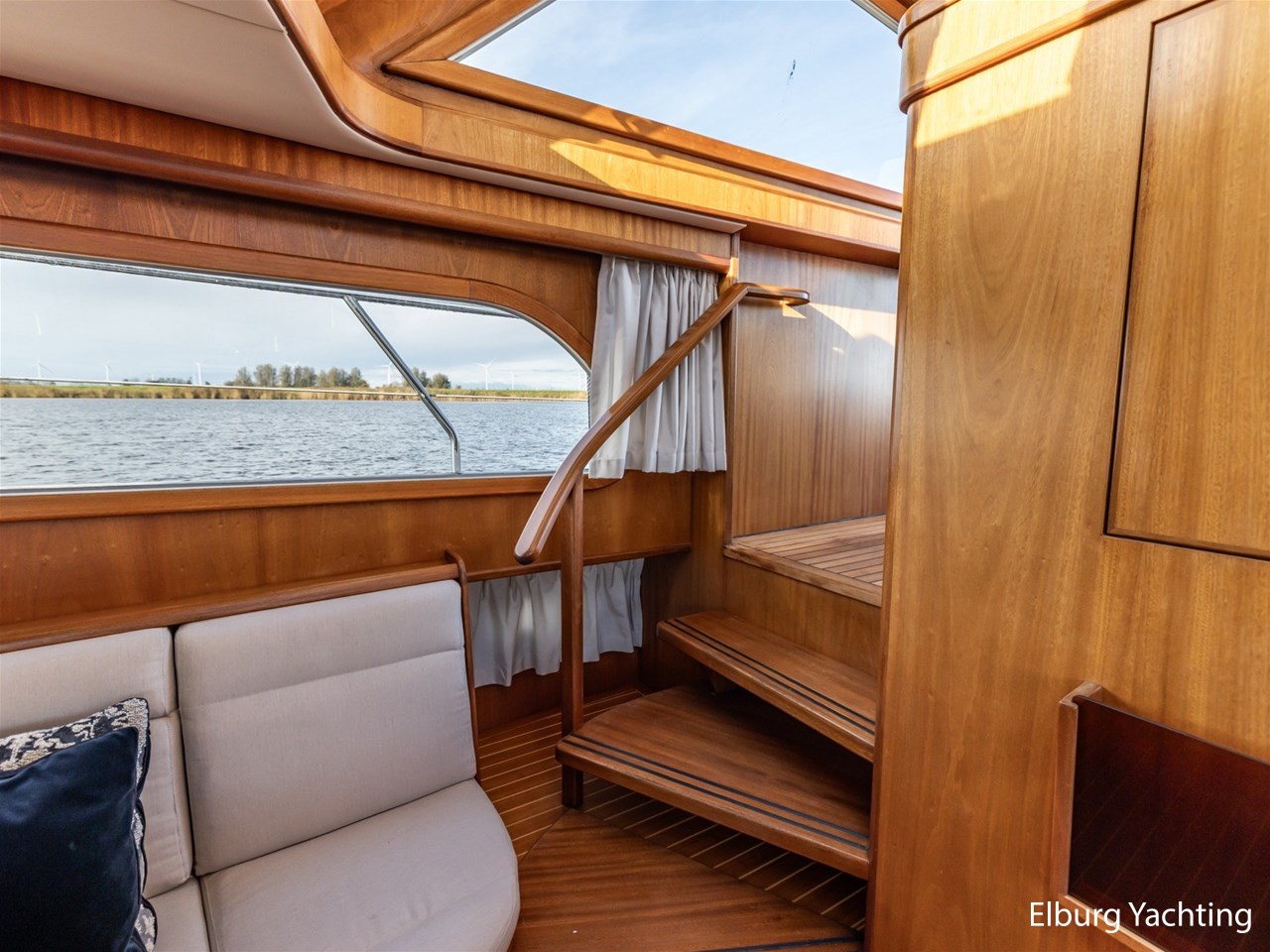 De Mulder Favorite 46 is een elegant en degelijk motorjacht, ontworpen door Guido de Groot en gebouwd door de gerenommeerde werf Mulder Shipyard. Dit jacht straalt tijdloze klasse uit en is ontworpen voor comfortabel en stijlvol verblijf aan boord. De ruime open kuip staat in directe verbinding met de salon en het stuurhuis, wat zorgt voor een open en lichte leefruimte. Het interieur is klassiek uitgevoerd in mahoniehout en voorzien van lichte, recent vernieuwde stoffering. Dankzij de twee hutten, elk met eigen sanitair, is het schip uitstekend geschikt voor langer verblijf aan boord. Tussen 2021 en 2025 is er breed geïnvesteerd in techniek, afwerking en uitrusting. Het teakdek is in 2023-2024 volledig vernieuwd door Jonker Jachtbouw. Het onderwaterschip is in diezelfde periode gestraald en behandeld met nieuwe antifouling. In 2023 is groot motoronderhoud uitgevoerd, inclusief de plaatsing van twee nieuwe turbo’s. In 2024 is aanvullende service aan de motoren uitgevoerd. Het jacht is voorzien van schroefassen en vierblads schroeven. De generator is in mei 2025 geserviced. De kruissnelheid bedraagt ca. 8 knopen bij 2500 rpm, met een maximale snelheid van ca. 11 knopen bij 3300 rpm. De economische vaarsnelheid ligt rond de ca. 7 knopen bij 2200 rpm. Qua uitrusting is het jacht voorzien van een uitgebreid en recent vernieuwd Raymarine-navigatiesysteem met onder andere twee Axiom 12” displays, radar, AIS, GPS, autopilot met afstandsbediening, VHF, windmeter en een camera op de radarboog. In 2023-2024 is er een nieuwe hekschroef met afstandsbediening aangebracht, naast de bestaande boegschroef. De kussens op het voordek zijn aanwezig en in 2023-2024 vernieuwd. Verder is het jacht uitgerust met RVS fenderhouders en een zoeklicht. Volledige documentatie van de werkzaamheden is op aanvraag beschikbaar. Voor vragen en/of het maken van een afspraak bent u 7 dagen per week van harte welkom bij Elburg Yachting.