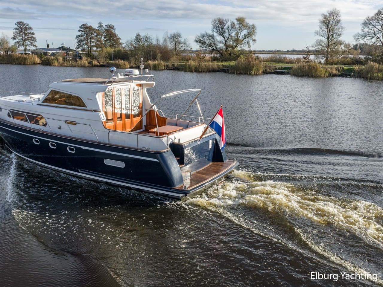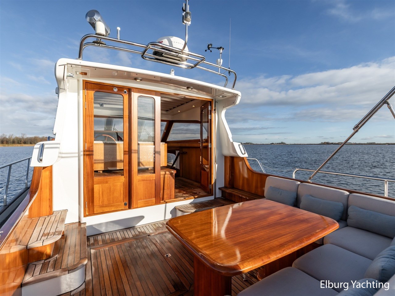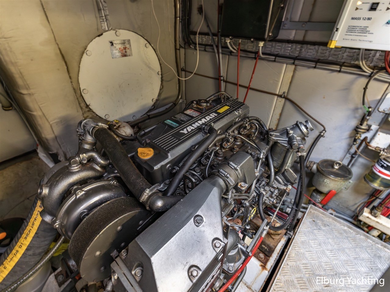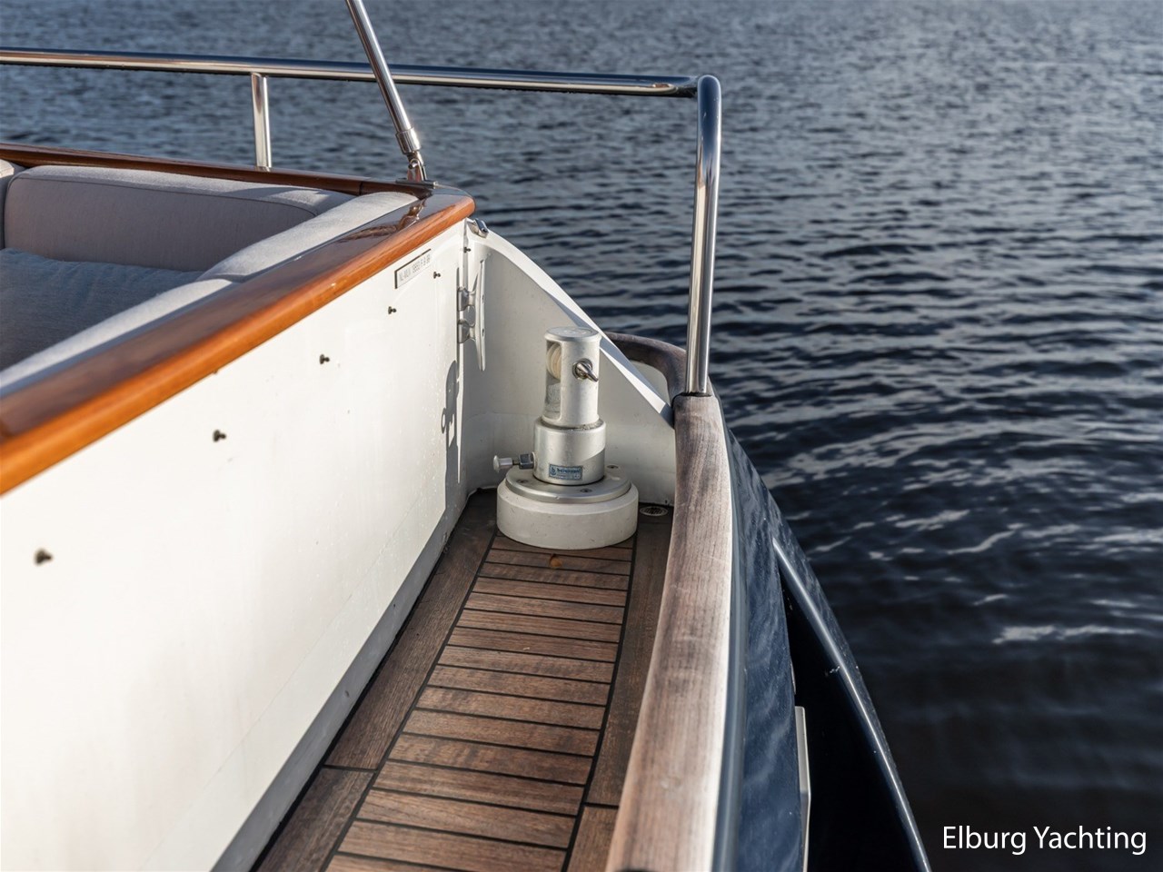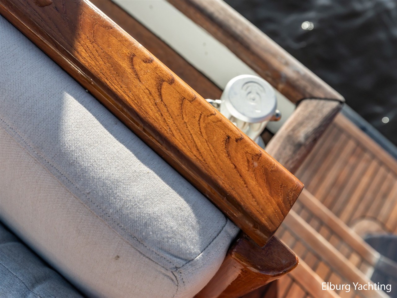 De Mulder Favorite 46 is een elegant en degelijk motorjacht, ontworpen door Guido de Groot en gebouwd door de gerenommeerde werf Mulder Shipyard. Dit jacht straalt tijdloze klasse uit en is ontworpen voor comfortabel en stijlvol verblijf aan boord. De ruime open kuip staat in directe verbinding met de salon en het stuurhuis, wat zorgt voor een open en lichte leefruimte. Het interieur is klassiek uitgevoerd in mahoniehout en voorzien van lichte, recent vernieuwde stoffering. Dankzij de twee hutten, elk met eigen sanitair, is het schip uitstekend geschikt voor langer verblijf aan boord. Tussen 2021 en 2025 is er breed geïnvesteerd in techniek, afwerking en uitrusting. Het teakdek is in 2023-2024 volledig vernieuwd door Jonker Jachtbouw. Het onderwaterschip is in diezelfde periode gestraald en behandeld met nieuwe antifouling. In 2023 is groot motoronderhoud uitgevoerd, inclusief de plaatsing van twee nieuwe turbo’s. In 2024 is aanvullende service aan de motoren uitgevoerd. Het jacht is voorzien van schroefassen en vierblads schroeven. De generator is in mei 2025 geserviced. De kruissnelheid bedraagt ca. 8 knopen bij 2500 rpm, met een maximale snelheid van ca. 11 knopen bij 3300 rpm. De economische vaarsnelheid ligt rond de ca. 7 knopen bij 2200 rpm. Qua uitrusting is het jacht voorzien van een uitgebreid en recent vernieuwd Raymarine-navigatiesysteem met onder andere twee Axiom 12” displays, radar, AIS, GPS, autopilot met afstandsbediening, VHF, windmeter en een camera op de radarboog. In 2023-2024 is er een nieuwe hekschroef met afstandsbediening aangebracht, naast de bestaande boegschroef. De kussens op het voordek zijn aanwezig en in 2023-2024 vernieuwd. Verder is het jacht uitgerust met RVS fenderhouders en een zoeklicht. Volledige documentatie van de werkzaamheden is op aanvraag beschikbaar. Voor vragen en/of het maken van een afspraak bent u 7 dagen per week van harte welkom bij Elburg Yachting.