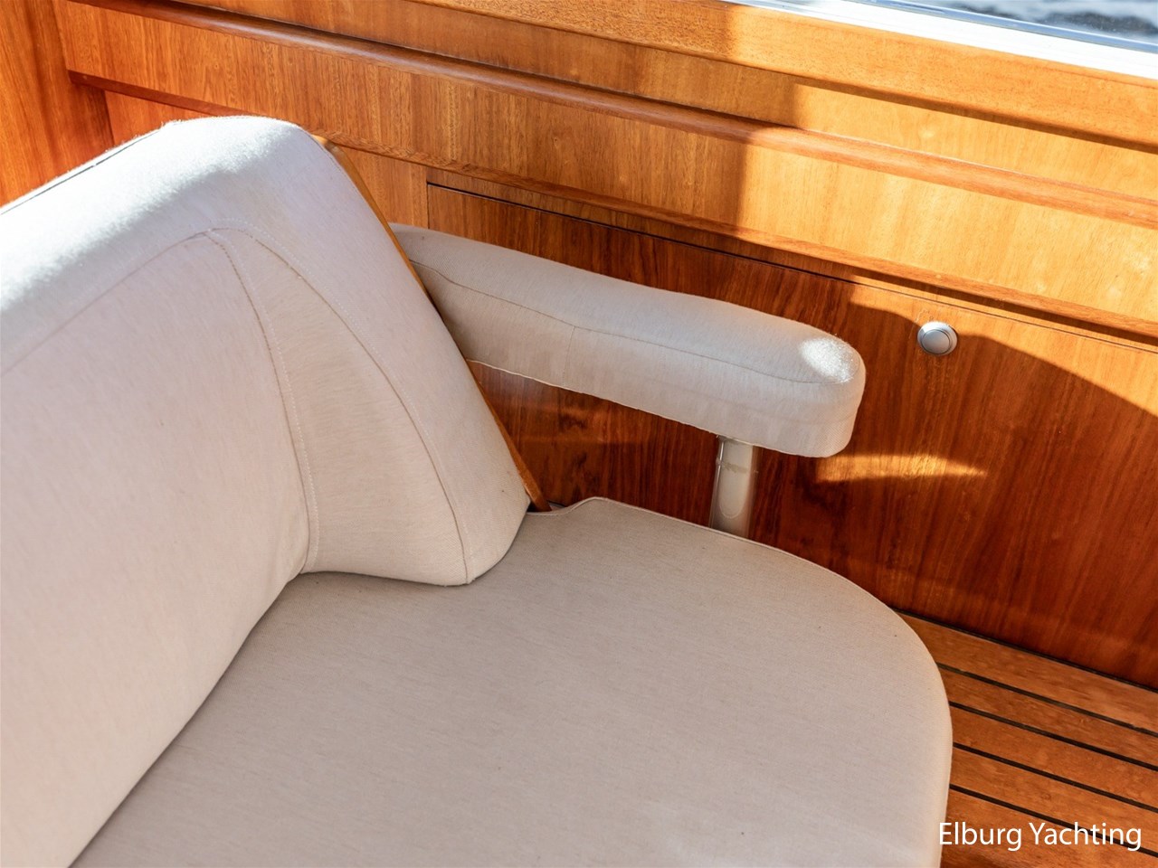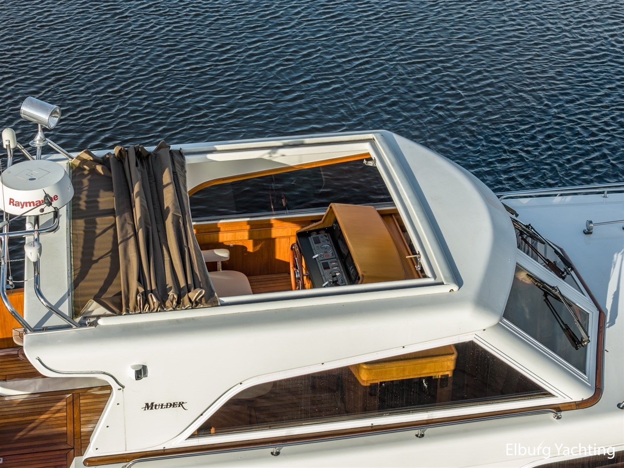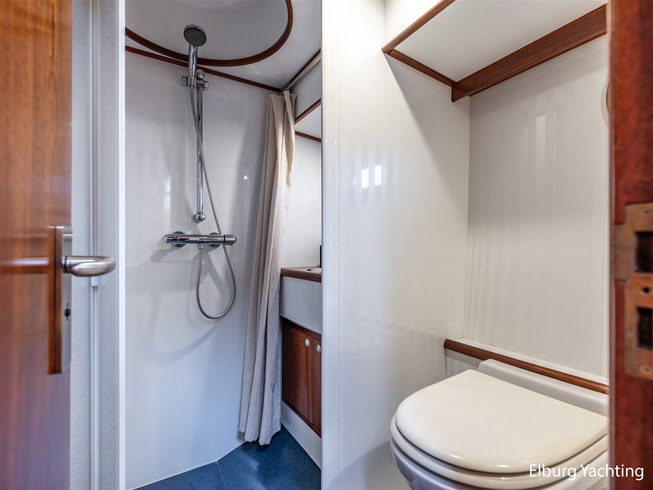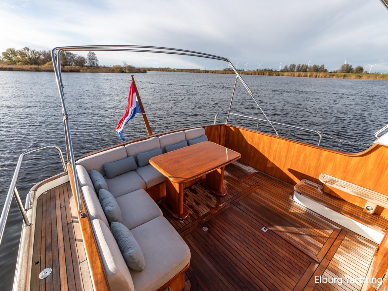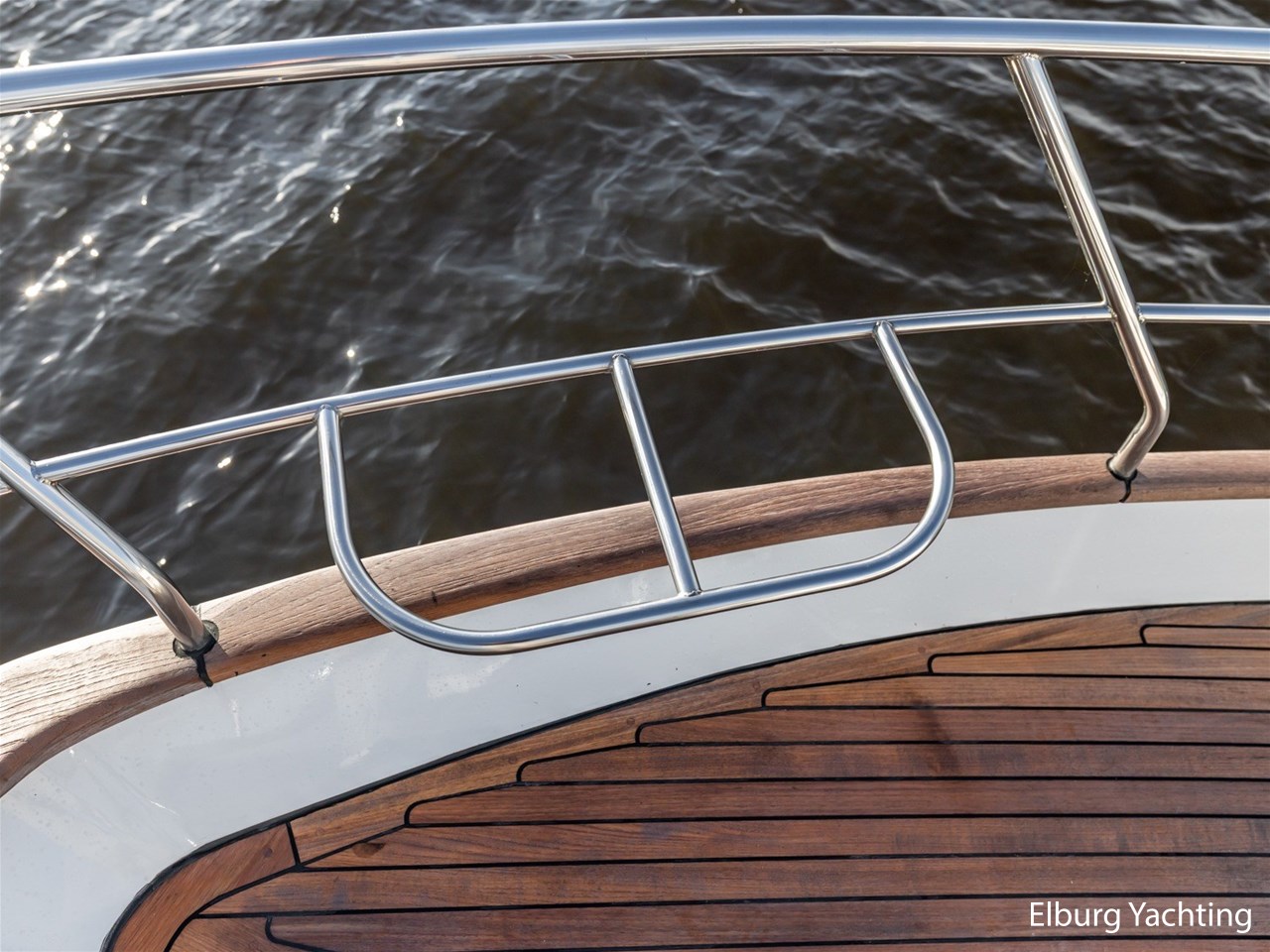 De Mulder Favorite 46 is een elegant en degelijk motorjacht, ontworpen door Guido de Groot en gebouwd door de gerenommeerde werf Mulder Shipyard. Dit jacht straalt tijdloze klasse uit en is ontworpen voor comfortabel en stijlvol verblijf aan boord. De ruime open kuip staat in directe verbinding met de salon en het stuurhuis, wat zorgt voor een open en lichte leefruimte. Het interieur is klassiek uitgevoerd in mahoniehout en voorzien van lichte, recent vernieuwde stoffering. Dankzij de twee hutten, elk met eigen sanitair, is het schip uitstekend geschikt voor langer verblijf aan boord. Tussen 2021 en 2025 is er breed geïnvesteerd in techniek, afwerking en uitrusting. Het teakdek is in 2023-2024 volledig vernieuwd door Jonker Jachtbouw. Het onderwaterschip is in diezelfde periode gestraald en behandeld met nieuwe antifouling. In 2023 is groot motoronderhoud uitgevoerd, inclusief de plaatsing van twee nieuwe turbo’s. In 2024 is aanvullende service aan de motoren uitgevoerd. Het jacht is voorzien van schroefassen en vierblads schroeven. De generator is in mei 2025 geserviced. De kruissnelheid bedraagt ca. 8 knopen bij 2500 rpm, met een maximale snelheid van ca. 11 knopen bij 3300 rpm. De economische vaarsnelheid ligt rond de ca. 7 knopen bij 2200 rpm. Qua uitrusting is het jacht voorzien van een uitgebreid en recent vernieuwd Raymarine-navigatiesysteem met onder andere twee Axiom 12” displays, radar, AIS, GPS, autopilot met afstandsbediening, VHF, windmeter en een camera op de radarboog. In 2023-2024 is er een nieuwe hekschroef met afstandsbediening aangebracht, naast de bestaande boegschroef. De kussens op het voordek zijn aanwezig en in 2023-2024 vernieuwd. Verder is het jacht uitgerust met RVS fenderhouders en een zoeklicht. Volledige documentatie van de werkzaamheden is op aanvraag beschikbaar. Voor vragen en/of het maken van een afspraak bent u 7 dagen per week van harte welkom bij Elburg Yachting.
