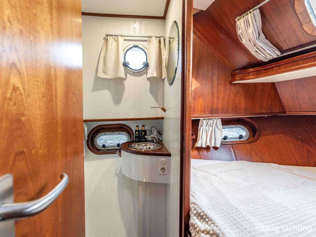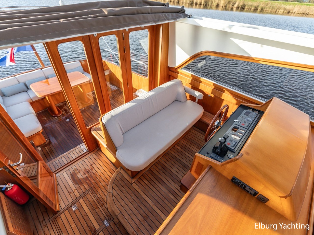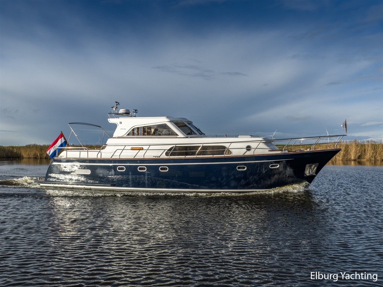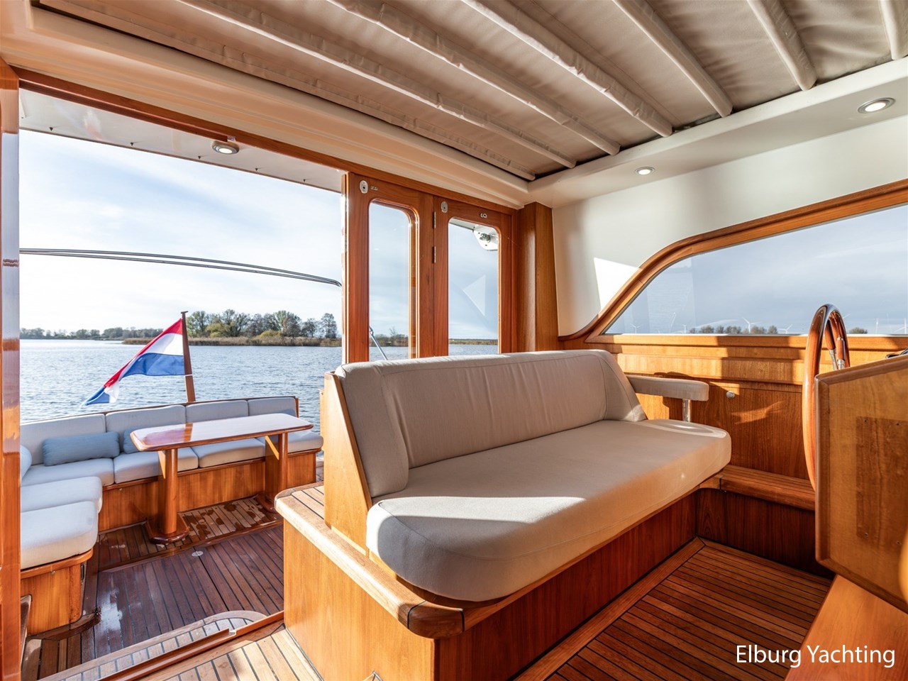 De Mulder Favorite 46 is een elegant en degelijk motorjacht, ontworpen door Guido de Groot en gebouwd door de gerenommeerde werf Mulder Shipyard. Dit jacht straalt tijdloze klasse uit en is ontworpen voor comfortabel en stijlvol verblijf aan boord. De ruime open kuip staat in directe verbinding met de salon en het stuurhuis, wat zorgt voor een open en lichte leefruimte. Het interieur is klassiek uitgevoerd in mahoniehout en voorzien van lichte, recent vernieuwde stoffering. Dankzij de twee hutten, elk met eigen sanitair, is het schip uitstekend geschikt voor langer verblijf aan boord. Tussen 2021 en 2025 is er breed geïnvesteerd in techniek, afwerking en uitrusting. Het teakdek is in 2023-2024 volledig vernieuwd door Jonker Jachtbouw. Het onderwaterschip is in diezelfde periode gestraald en behandeld met nieuwe antifouling. In 2023 is groot motoronderhoud uitgevoerd, inclusief de plaatsing van twee nieuwe turbo’s. In 2024 is aanvullende service aan de motoren uitgevoerd. Het jacht is voorzien van schroefassen en vierblads schroeven. De generator is in mei 2025 geserviced. De kruissnelheid bedraagt ca. 8 knopen bij 2500 rpm, met een maximale snelheid van ca. 11 knopen bij 3300 rpm. De economische vaarsnelheid ligt rond de ca. 7 knopen bij 2200 rpm. Qua uitrusting is het jacht voorzien van een uitgebreid en recent vernieuwd Raymarine-navigatiesysteem met onder andere twee Axiom 12” displays, radar, AIS, GPS, autopilot met afstandsbediening, VHF, windmeter en een camera op de radarboog. In 2023-2024 is er een nieuwe hekschroef met afstandsbediening aangebracht, naast de bestaande boegschroef. De kussens op het voordek zijn aanwezig en in 2023-2024 vernieuwd. Verder is het jacht uitgerust met RVS fenderhouders en een zoeklicht. Volledige documentatie van de werkzaamheden is op aanvraag beschikbaar. Voor vragen en/of het maken van een afspraak bent u 7 dagen per week van harte welkom bij Elburg Yachting.