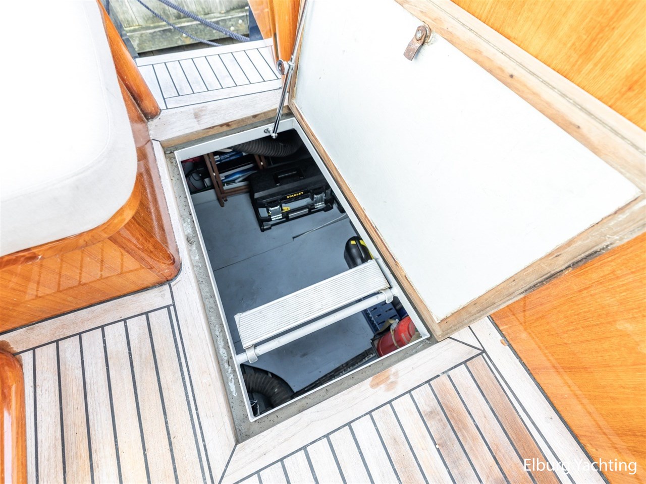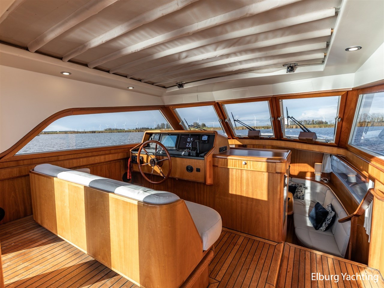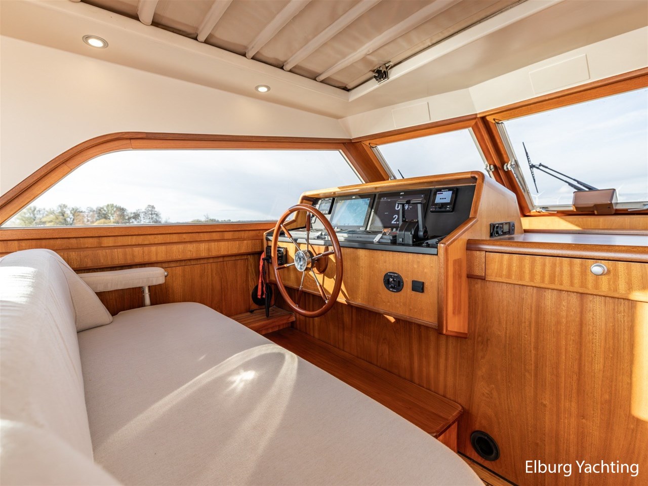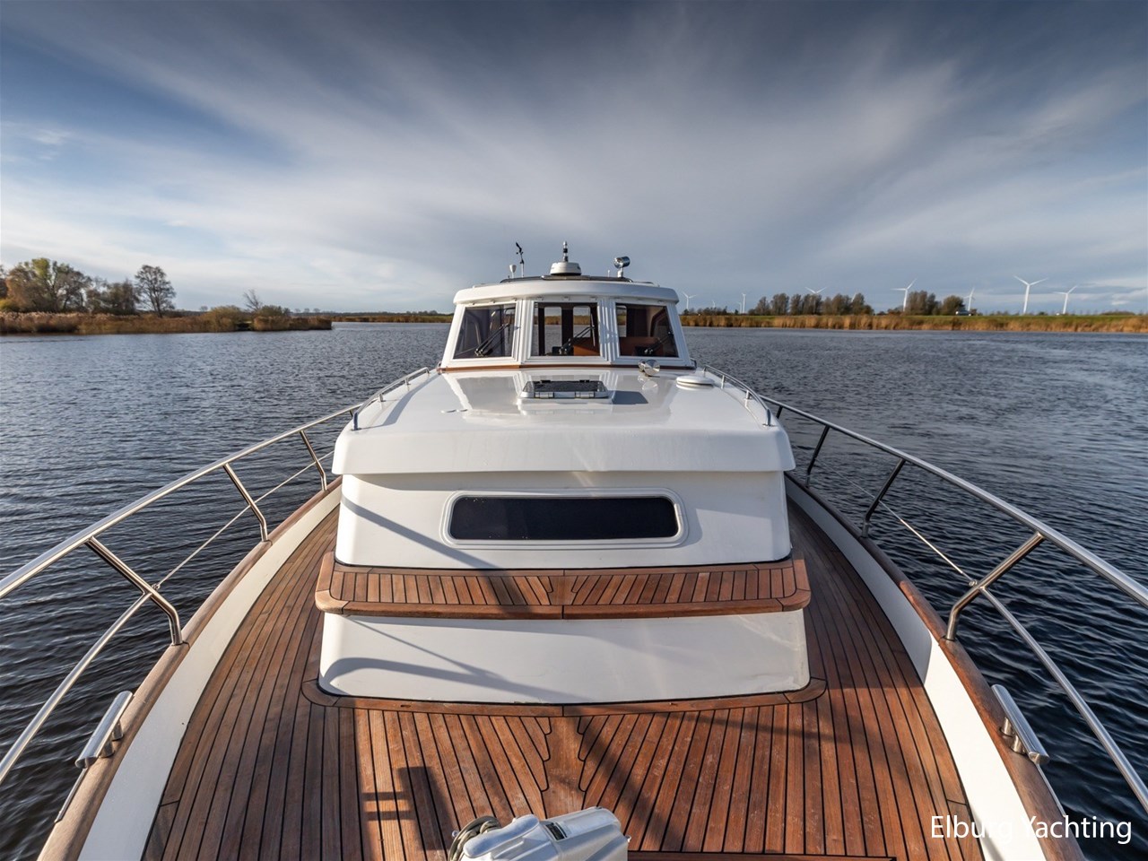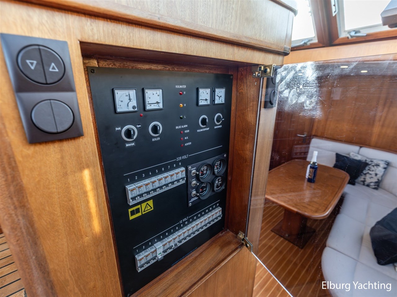 De Mulder Favorite 46 is een elegant en degelijk motorjacht, ontworpen door Guido de Groot en gebouwd door de gerenommeerde werf Mulder Shipyard. Dit jacht straalt tijdloze klasse uit en is ontworpen voor comfortabel en stijlvol verblijf aan boord. De ruime open kuip staat in directe verbinding met de salon en het stuurhuis, wat zorgt voor een open en lichte leefruimte. Het interieur is klassiek uitgevoerd in mahoniehout en voorzien van lichte, recent vernieuwde stoffering. Dankzij de twee hutten, elk met eigen sanitair, is het schip uitstekend geschikt voor langer verblijf aan boord. Tussen 2021 en 2025 is er breed geïnvesteerd in techniek, afwerking en uitrusting. Het teakdek is in 2023-2024 volledig vernieuwd door Jonker Jachtbouw. Het onderwaterschip is in diezelfde periode gestraald en behandeld met nieuwe antifouling. In 2023 is groot motoronderhoud uitgevoerd, inclusief de plaatsing van twee nieuwe turbo’s. In 2024 is aanvullende service aan de motoren uitgevoerd. Het jacht is voorzien van schroefassen en vierblads schroeven. De generator is in mei 2025 geserviced. De kruissnelheid bedraagt ca. 8 knopen bij 2500 rpm, met een maximale snelheid van ca. 11 knopen bij 3300 rpm. De economische vaarsnelheid ligt rond de ca. 7 knopen bij 2200 rpm. Qua uitrusting is het jacht voorzien van een uitgebreid en recent vernieuwd Raymarine-navigatiesysteem met onder andere twee Axiom 12” displays, radar, AIS, GPS, autopilot met afstandsbediening, VHF, windmeter en een camera op de radarboog. In 2023-2024 is er een nieuwe hekschroef met afstandsbediening aangebracht, naast de bestaande boegschroef. De kussens op het voordek zijn aanwezig en in 2023-2024 vernieuwd. Verder is het jacht uitgerust met RVS fenderhouders en een zoeklicht. Volledige documentatie van de werkzaamheden is op aanvraag beschikbaar. Voor vragen en/of het maken van een afspraak bent u 7 dagen per week van harte welkom bij Elburg Yachting.