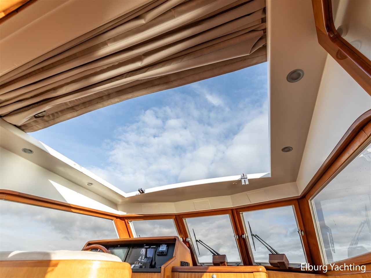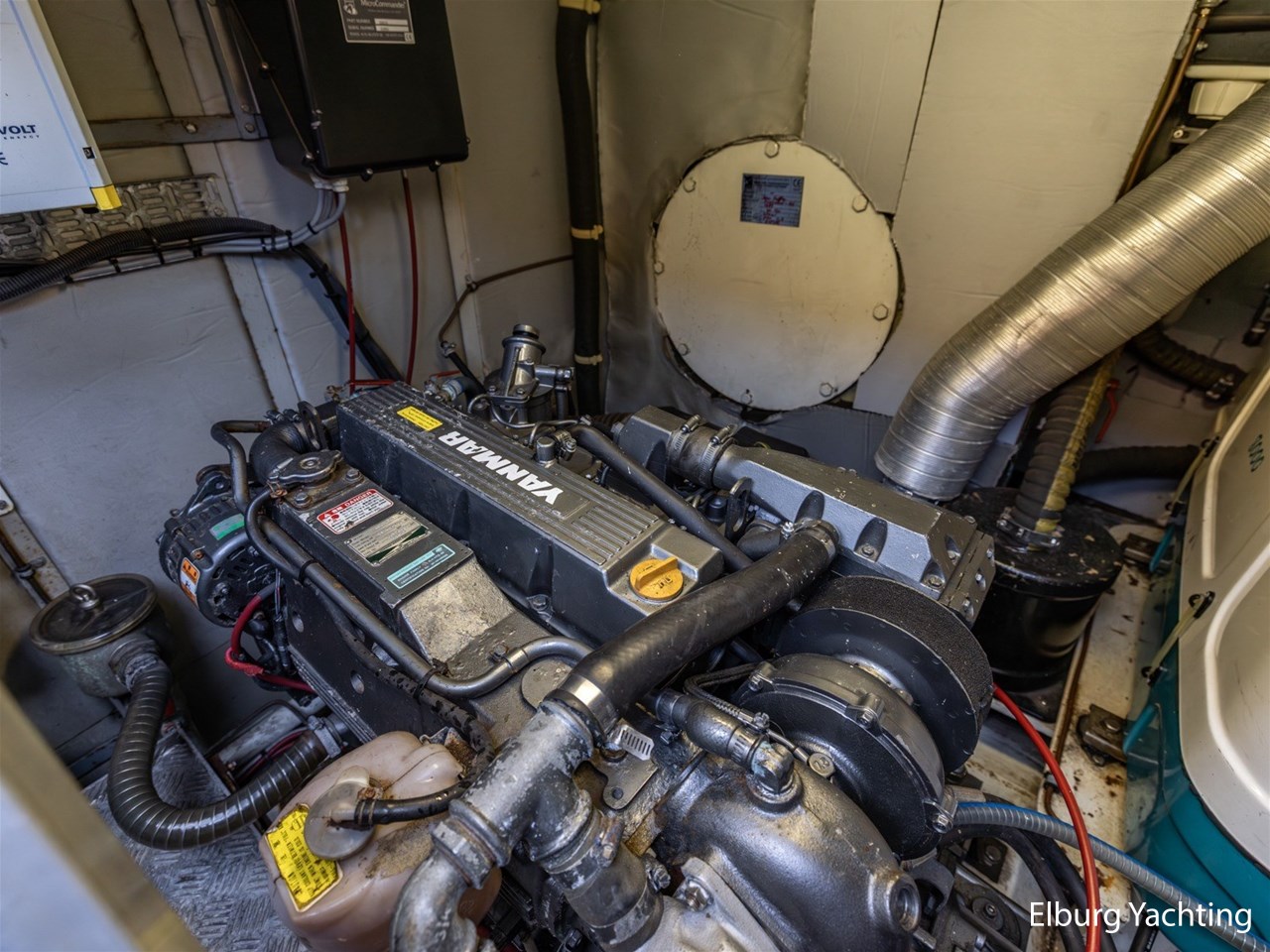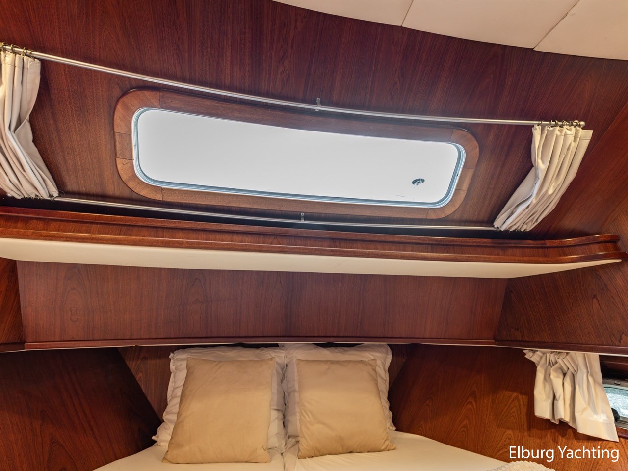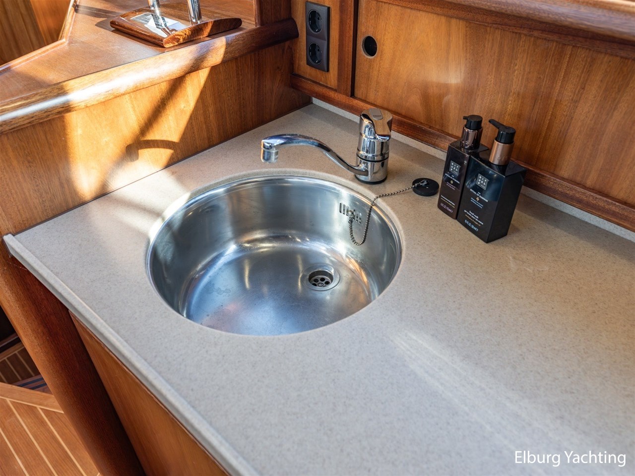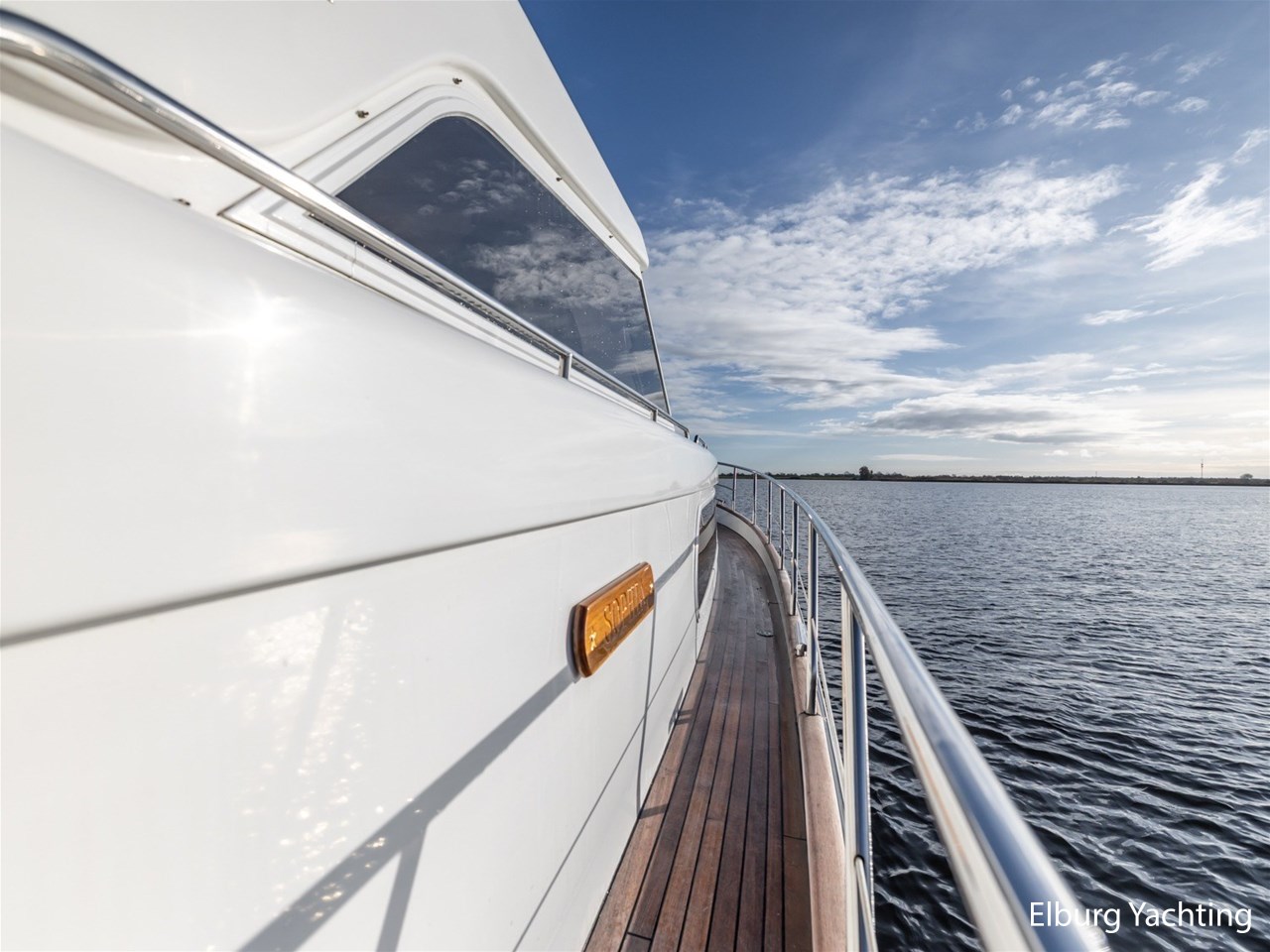 De Mulder Favorite 46 is een elegant en degelijk motorjacht, ontworpen door Guido de Groot en gebouwd door de gerenommeerde werf Mulder Shipyard. Dit jacht straalt tijdloze klasse uit en is ontworpen voor comfortabel en stijlvol verblijf aan boord. De ruime open kuip staat in directe verbinding met de salon en het stuurhuis, wat zorgt voor een open en lichte leefruimte. Het interieur is klassiek uitgevoerd in mahoniehout en voorzien van lichte, recent vernieuwde stoffering. Dankzij de twee hutten, elk met eigen sanitair, is het schip uitstekend geschikt voor langer verblijf aan boord. Tussen 2021 en 2025 is er breed geïnvesteerd in techniek, afwerking en uitrusting. Het teakdek is in 2023-2024 volledig vernieuwd door Jonker Jachtbouw. Het onderwaterschip is in diezelfde periode gestraald en behandeld met nieuwe antifouling. In 2023 is groot motoronderhoud uitgevoerd, inclusief de plaatsing van twee nieuwe turbo’s. In 2024 is aanvullende service aan de motoren uitgevoerd. Het jacht is voorzien van schroefassen en vierblads schroeven. De generator is in mei 2025 geserviced. De kruissnelheid bedraagt ca. 8 knopen bij 2500 rpm, met een maximale snelheid van ca. 11 knopen bij 3300 rpm. De economische vaarsnelheid ligt rond de ca. 7 knopen bij 2200 rpm. Qua uitrusting is het jacht voorzien van een uitgebreid en recent vernieuwd Raymarine-navigatiesysteem met onder andere twee Axiom 12” displays, radar, AIS, GPS, autopilot met afstandsbediening, VHF, windmeter en een camera op de radarboog. In 2023-2024 is er een nieuwe hekschroef met afstandsbediening aangebracht, naast de bestaande boegschroef. De kussens op het voordek zijn aanwezig en in 2023-2024 vernieuwd. Verder is het jacht uitgerust met RVS fenderhouders en een zoeklicht. Volledige documentatie van de werkzaamheden is op aanvraag beschikbaar. Voor vragen en/of het maken van een afspraak bent u 7 dagen per week van harte welkom bij Elburg Yachting.