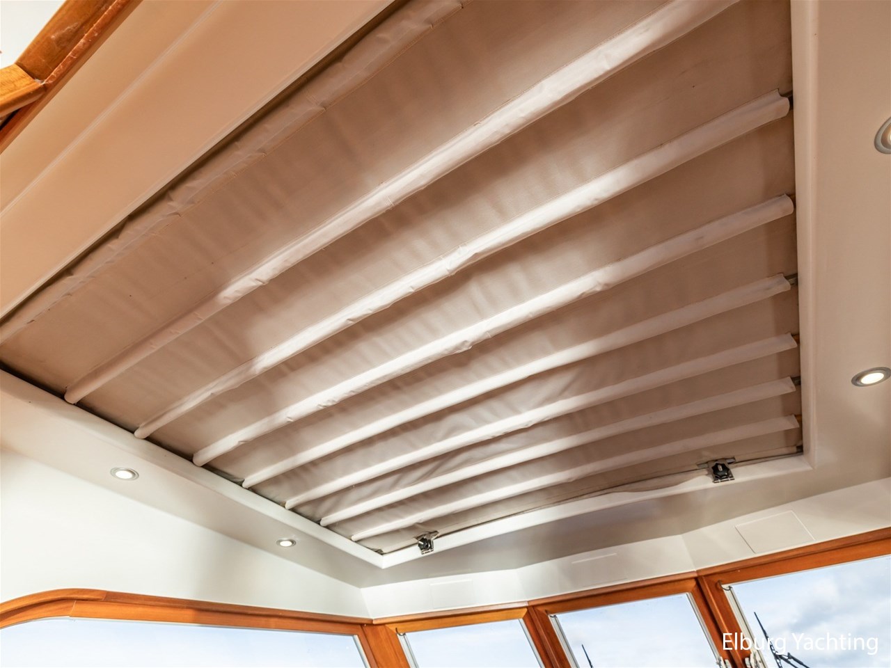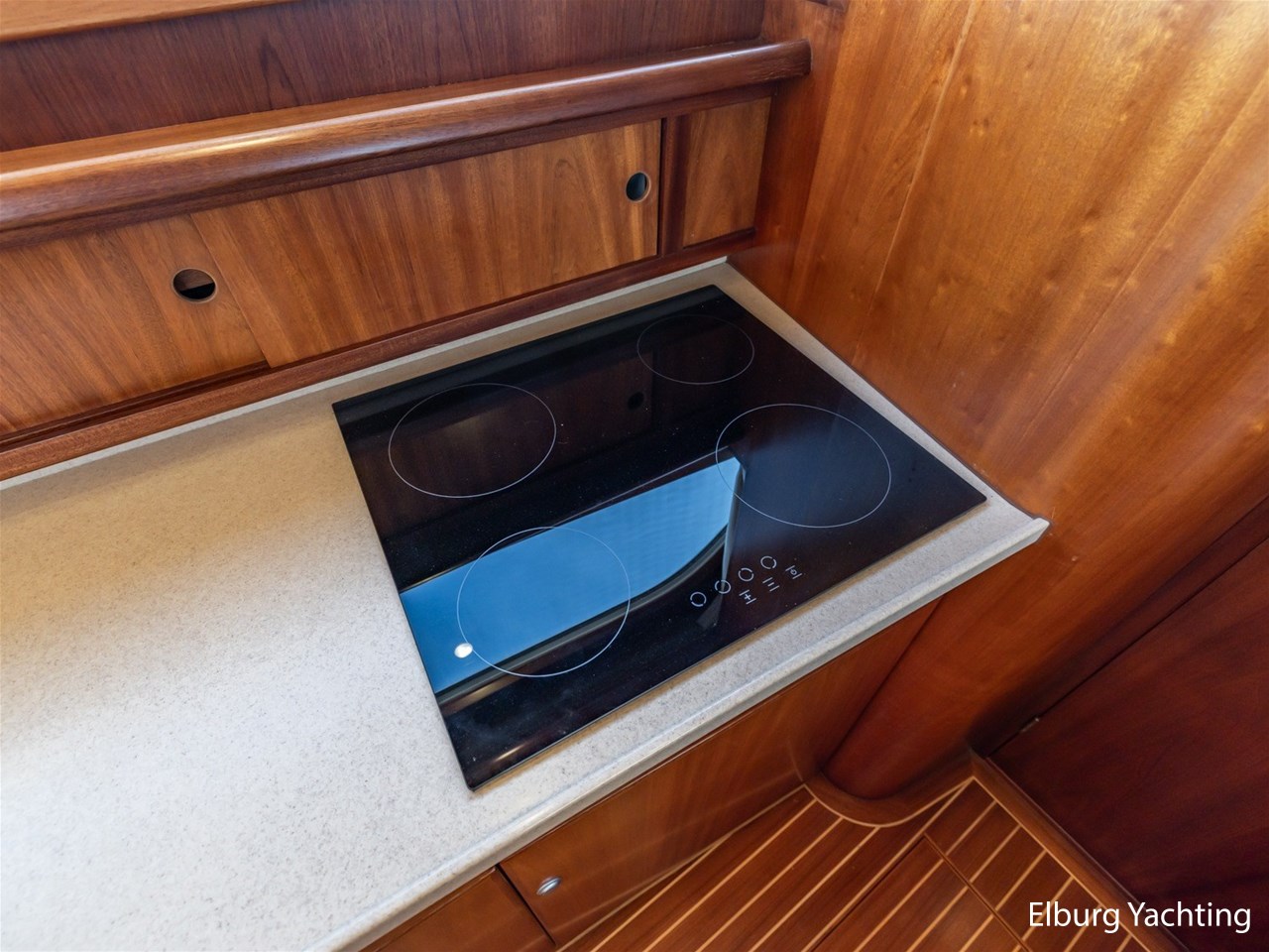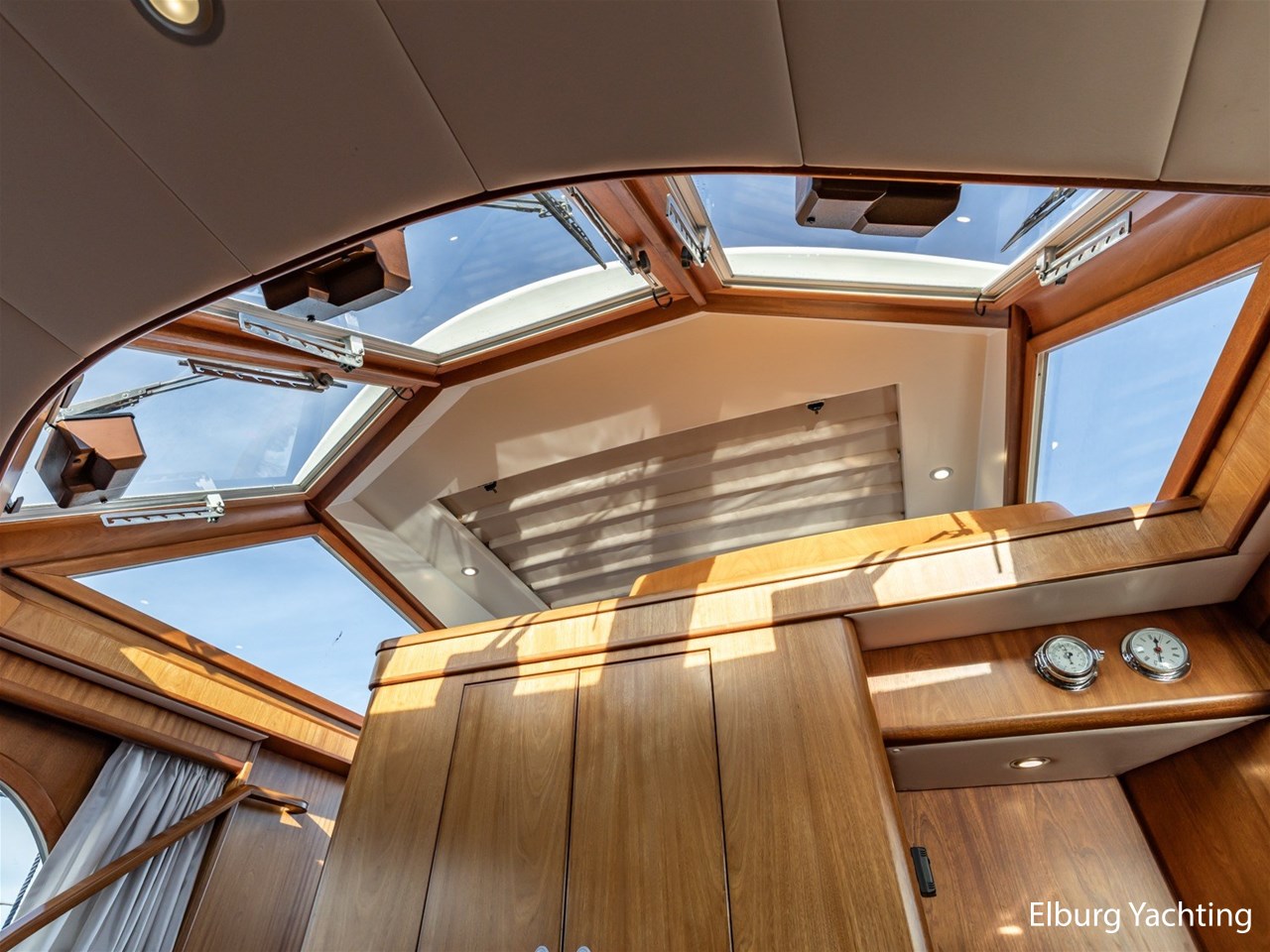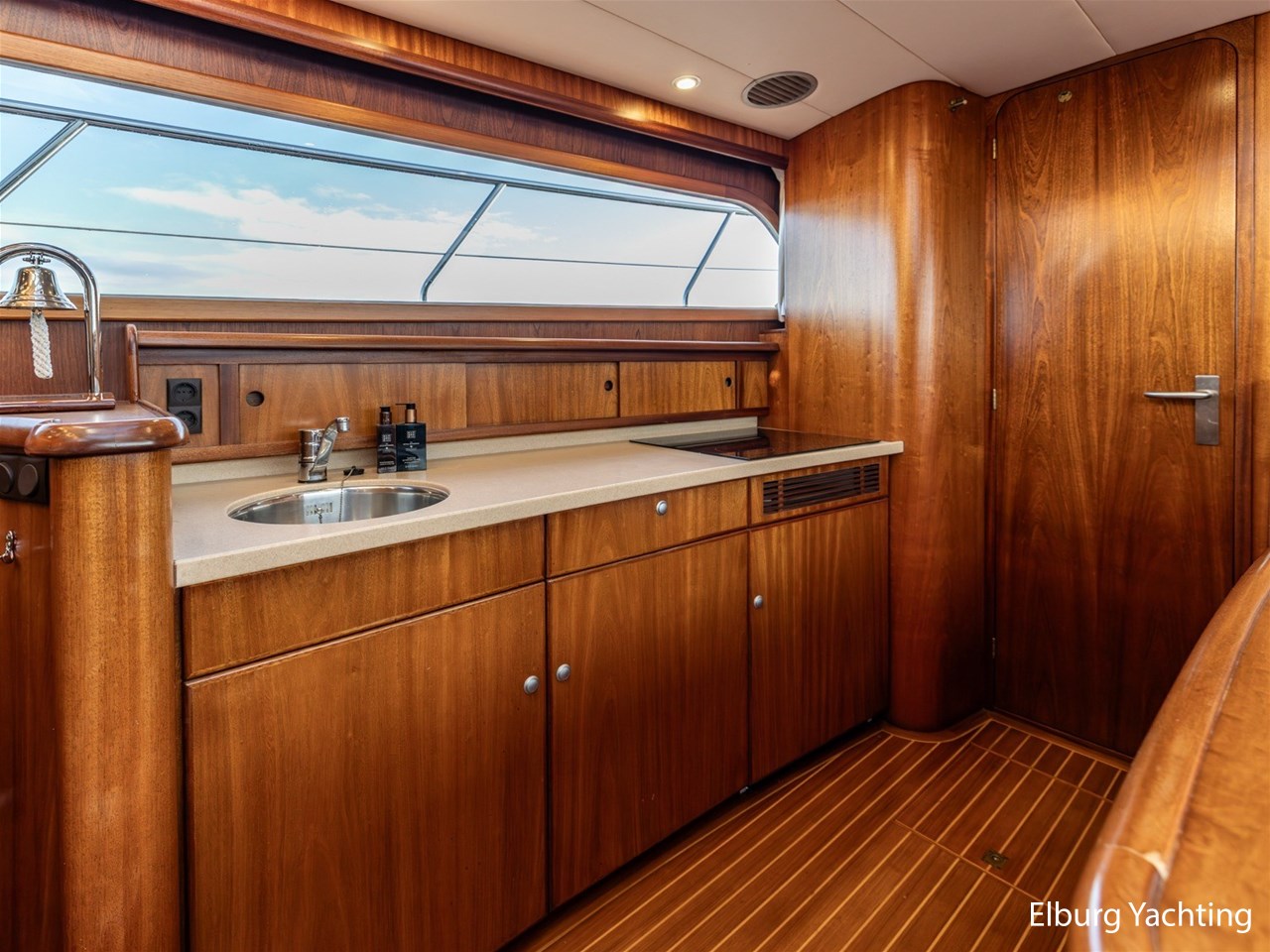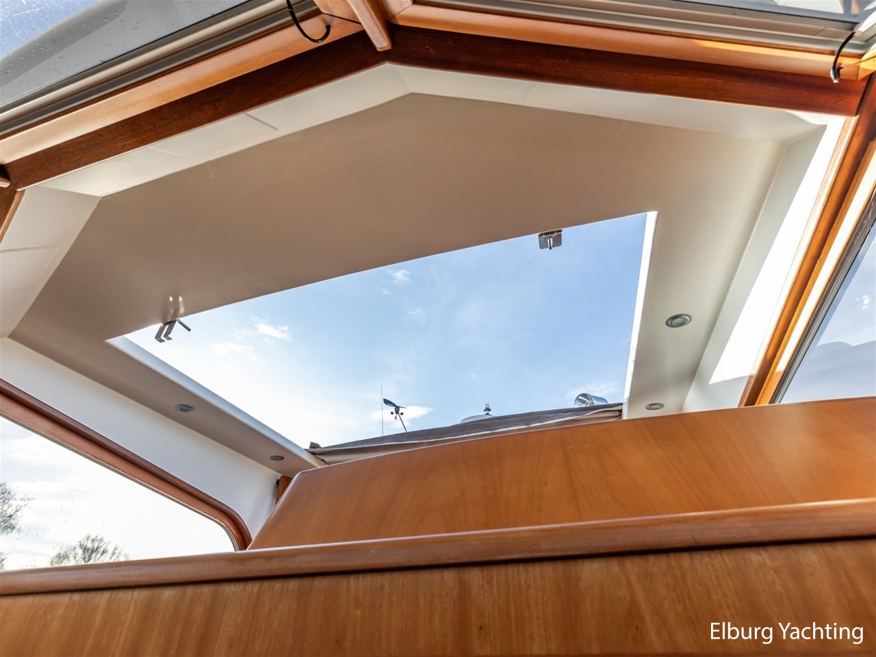De Mulder Favorite 46 is een elegant en degelijk motorjacht, ontworpen door Guido de Groot en gebouwd door de gerenommeerde werf Mulder Shipyard. Dit jacht straalt tijdloze klasse uit en is ontworpen voor comfortabel en stijlvol verblijf aan boord. De ruime open kuip staat in directe verbinding met de salon en het stuurhuis, wat zorgt voor een open en lichte leefruimte. Het interieur is klassiek uitgevoerd in mahoniehout en voorzien van lichte, recent vernieuwde stoffering. Dankzij de twee hutten, elk met eigen sanitair, is het schip uitstekend geschikt voor langer verblijf aan boord. Tussen 2021 en 2025 is er breed geïnvesteerd in techniek, afwerking en uitrusting. Het teakdek is in 2023-2024 volledig vernieuwd door Jonker Jachtbouw. Het onderwaterschip is in diezelfde periode gestraald en behandeld met nieuwe antifouling. In 2023 is groot motoronderhoud uitgevoerd, inclusief de plaatsing van twee nieuwe turbo’s. In 2024 is aanvullende service aan de motoren uitgevoerd. Het jacht is voorzien van schroefassen en vierblads schroeven. De generator is in mei 2025 geserviced. De kruissnelheid bedraagt ca. 8 knopen bij 2500 rpm, met een maximale snelheid van ca. 11 knopen bij 3300 rpm. De economische vaarsnelheid ligt rond de ca. 7 knopen bij 2200 rpm. Qua uitrusting is het jacht voorzien van een uitgebreid en recent vernieuwd Raymarine-navigatiesysteem met onder andere twee Axiom 12” displays, radar, AIS, GPS, autopilot met afstandsbediening, VHF, windmeter en een camera op de radarboog. In 2023-2024 is er een nieuwe hekschroef met afstandsbediening aangebracht, naast de bestaande boegschroef. De kussens op het voordek zijn aanwezig en in 2023-2024 vernieuwd. Verder is het jacht uitgerust met RVS fenderhouders en een zoeklicht. Volledige documentatie van de werkzaamheden is op aanvraag beschikbaar. Voor vragen en/of het maken van een afspraak bent u 7 dagen per week van harte welkom bij Elburg Yachting.