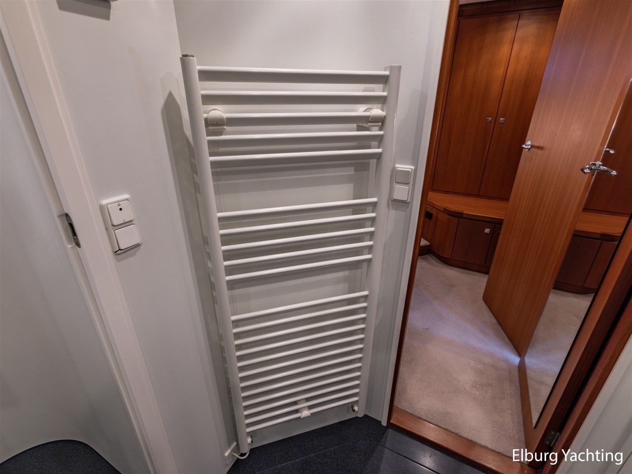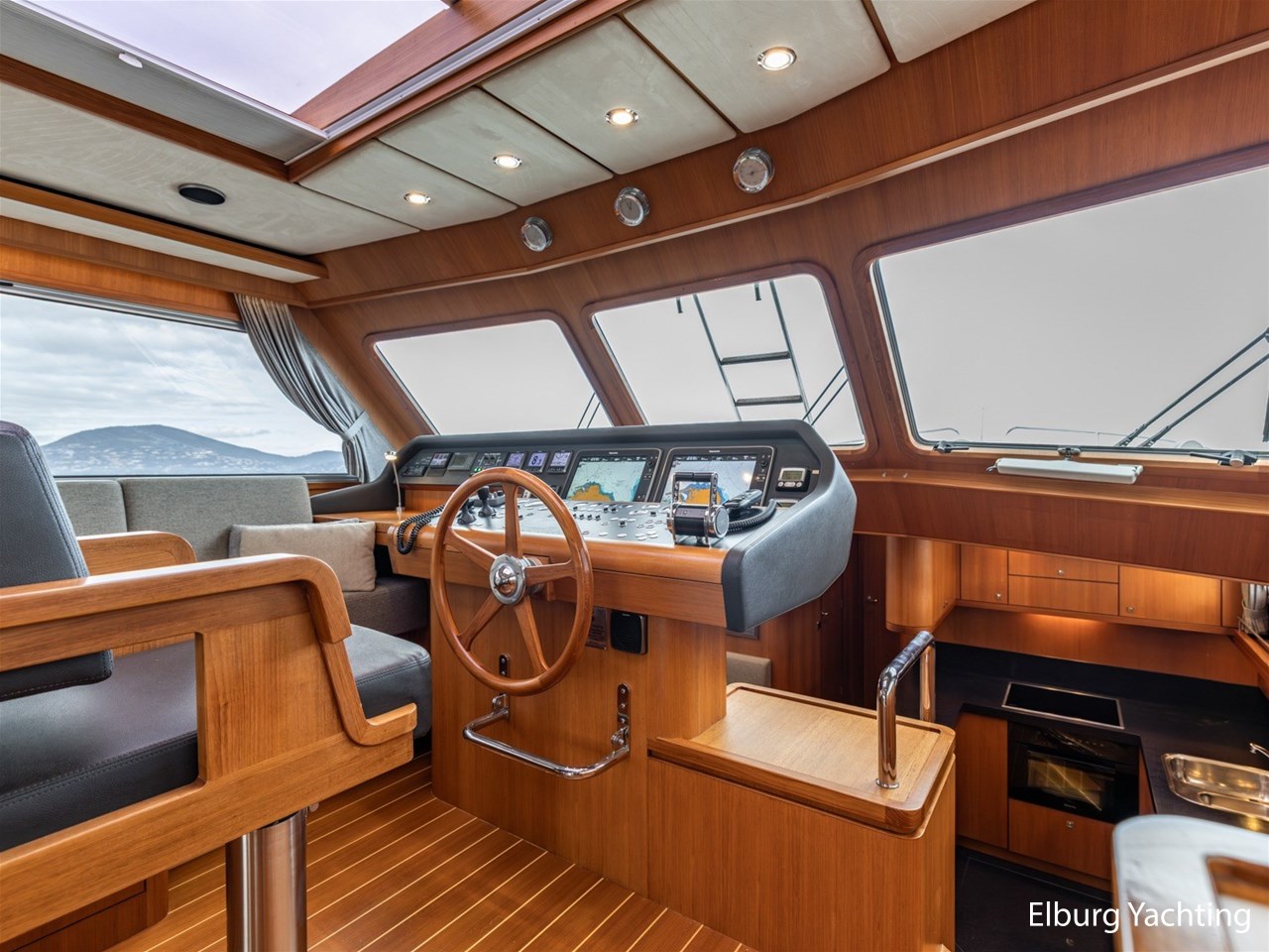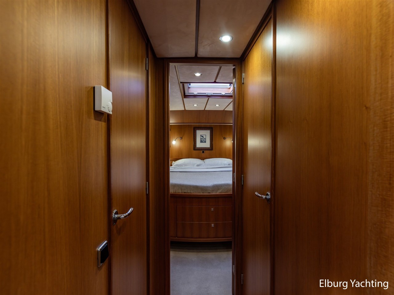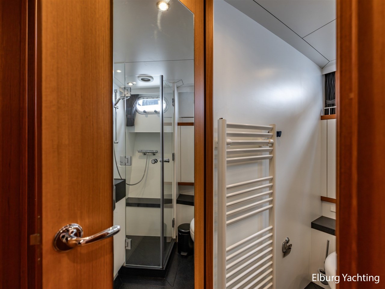 Modern en zeer comfortabel gebouwde stalen Sturiër 620 OC voorzien van hoogwaardige materialen en gebruik van kwaliteitstechniek gebouwd door de Volharding in Stavoren. Het schip is gebouwd in 2013 en in 2014 in de vaar genomen. Deze Sturiër 620 OC heeft een drie hutten indeling met een riante eigenaarshut over de volledige breedte midscheeps, een comfortabele 2 persoons gastenhut in het voorschip en een 2 x 1 persoons stapelbed. De salon/stuurhuis en achterdek zijn gelijkvloers aan elkaar verbonden voor een optimale ruimte beleving. De eigenaarshut heeft een badkamer en-suite en de voorste twee hutten delen een gezamenlijke badkamer. De aandrijving wordt verzorgd door twee sterke John Deere motoren met elk 267pk, dit zorgt voor een soepele toch krachtige manoeuvreerbaarheid. Dit jacht is uitgevoerd met een hydraulisch Naiad stabiliteitssysteem, waardoor het ook aangenamer varen is op groter water of in slechtere weersomstandigheden. Deze Sturier 620 OC is zeer rijk uitgerust en is onder andere voorzien van: Vloerverwarming door het gehele schip, groot opbergluik in achterschip met toegang tot vele technische componenten, 2 x entree naar machinekamer zowel binnendoor als via de kuip, Bosch vriezer, Vaste banken in open kuip met afneembare kussenset, vaste biminitop over de open kuip, veel r.v.s. dekbeslag, 2-persoons bank op het voordek, ligkussen met bimini op voordek, 8 x zonnepanelen 1400W, Hydronautica afstandsbediening voor het bedienen van de boeg- en hekschroef en ook de hoofdmotoren stationair voor- en achteruit, elektrisch bedienbare blinds voor de voorruiten met afstandsbediening, stoffering van Neptune uit 2023, luxe vaarstoel met meevaarbank, elektrisch bedienbaar schuifdak boven stuurstand met hor en verduistering mogelijkheid, 4 x schuifraam in salon, muggenhorren voor patrijspoorten, goed 360gr. zicht bij de stuurstand, corian topbladen, Miele vaatwasmachine, Bosch Maxx5 was-droog combinatie, elektrische tafelpoot voor salontafel, TV op lift, soft closing lades, extra groot zwemplateau, tanks met mangaten, Victron walstroomscheidingstrafo, Victron Cerbo display, Fusion audiosysteem. Het schip heeft zich inmiddels ruimschoots bewezen met zijn zeereizen naar de Middellandse zee. Het schip is op dit moment in de haven van Saint-Tropez/Frankrijk te bezichtigen op afspraak.