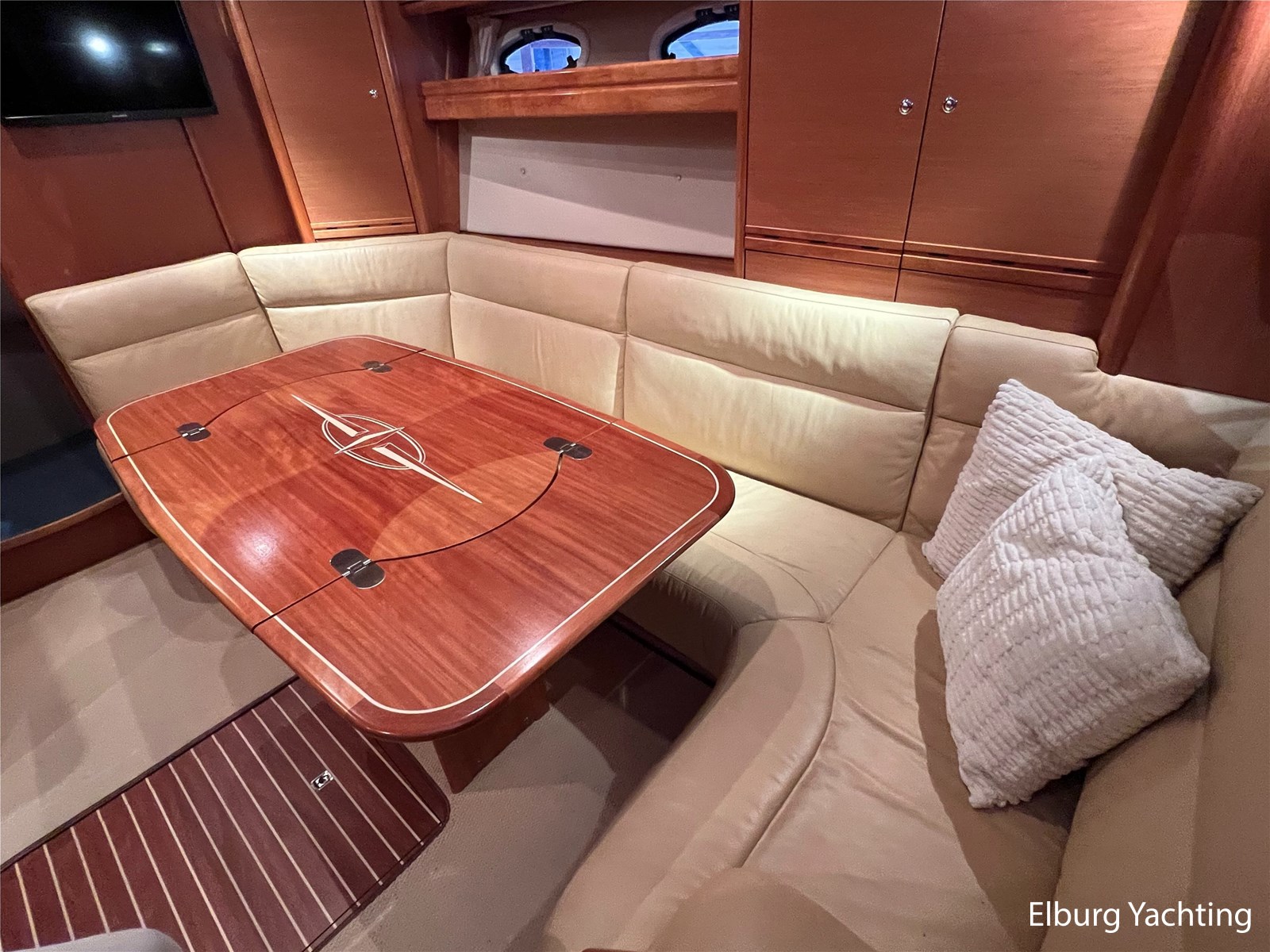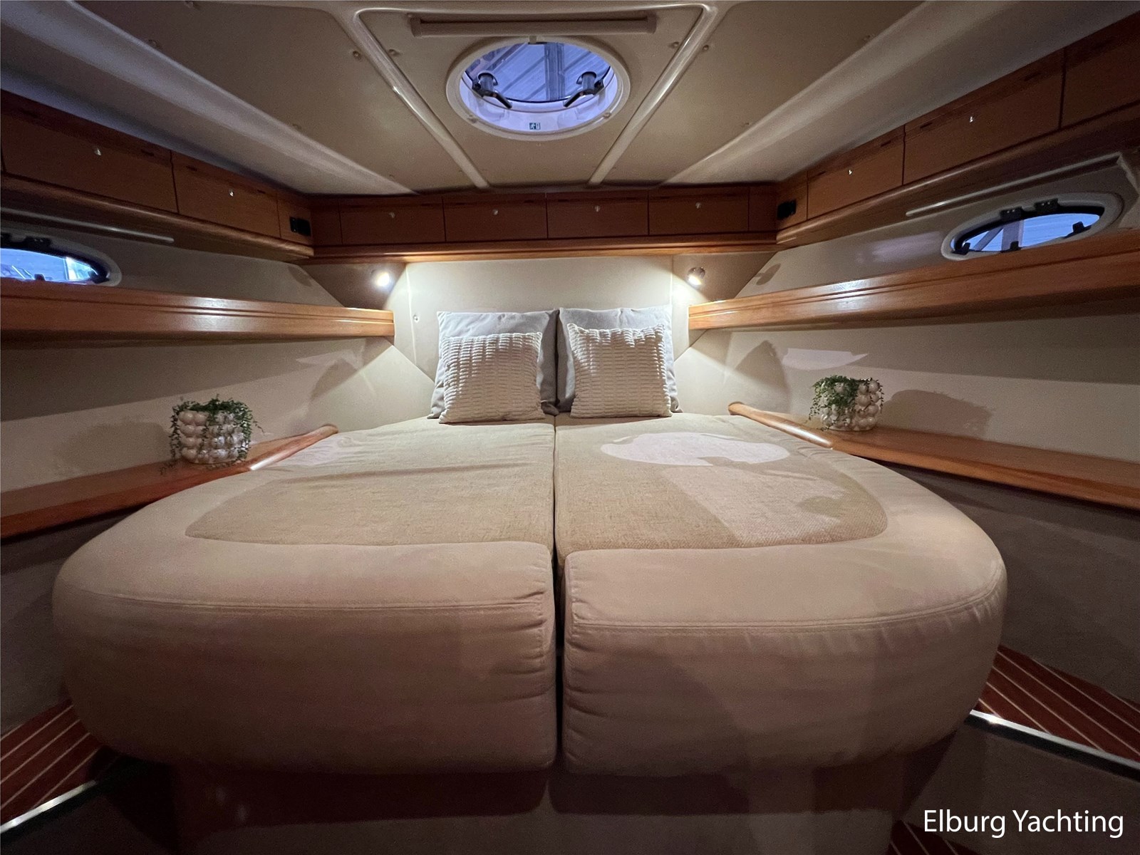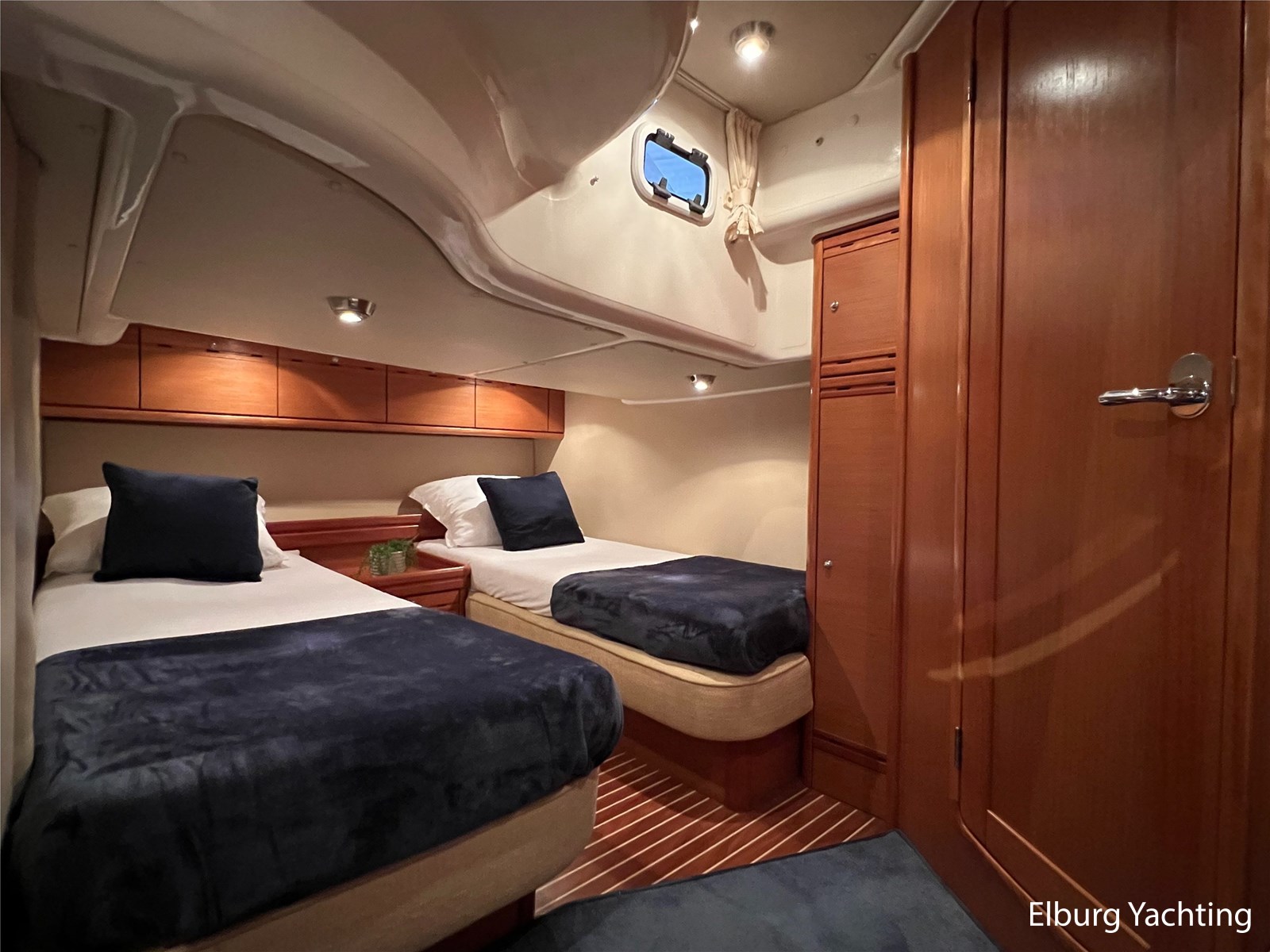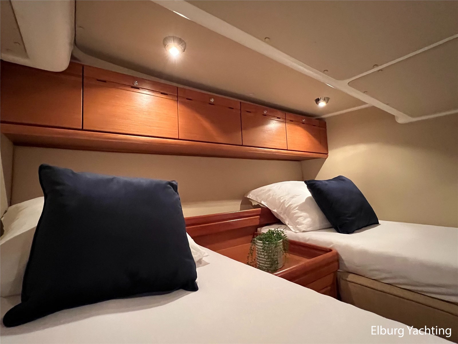 De Bavaria 42 HT Sport is door een combinatie van veel praktische ruimte en goede vaareigenschappen een sportieve allrounder voor zowel binnenwateren als op het grote water. De Bavaria 42 HT kenmerkt zich door de vast opbouw met een groot elektrisch bedienbaar cabriodak, ideaal om te genieten van het mooie weer of prettig afsluitbaar bij mindere weersomstandigheden. Het volledige achterdek is afsluitbaar met een tent met grote uitritsbare zichtvensters. Het zwemplateau is hydraulisch afzinkbaar, handig voor het meenemen van een bijboot of gemakkelijk voor het op- en afstappen bij het zwemmen. Op het achterdek bevindt zich een zonnebed met een ruim onderliggende bergruimte. De machinekamer is bereikbaar vanuit de kuip met een elektrisch bedienbaar luik. Een meevaarbank is in de vaarrichting geplaatst. In de kuip biedt de wetbar een grillplaat, spoelbak en koelkast. Benedendeks bevindt zich de salon en kombuis. De stahoogte van 2m+ valt direct op en geeft een ruimtelijk gevoel. In de voorhut is een 2 persoons frans bed gesitueerd met eigen sanitair (toilet/douche) en-suite. Een tweede 2-persoonshut bevindt zich midscheeps, tevens voorzien van eigen sanitair en-suite. In 2025 zijn diverse vernieuwingen doorgevoerd, waaronder nieuwe antifouling, anodes, zwemvesten, een draadloos headset intercomsysteem, nieuwe fenders met hoezen, RVS bij bootsteunen (ook geschikt voor jetski), een wifi-installatie, twee smart TV’s, een Bluetooth radio, op maat gemaakte matrassen en een druppellader. Voor vragen en/of het maken van een afspraak bent u 7 dagen per week van harte welkom bij Elburg Yachting.