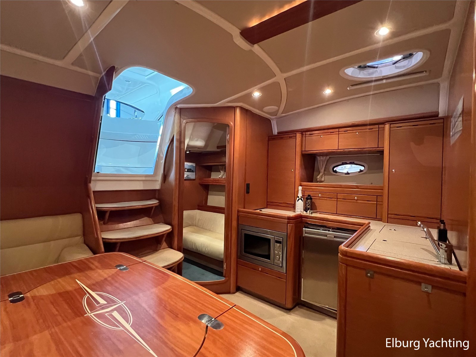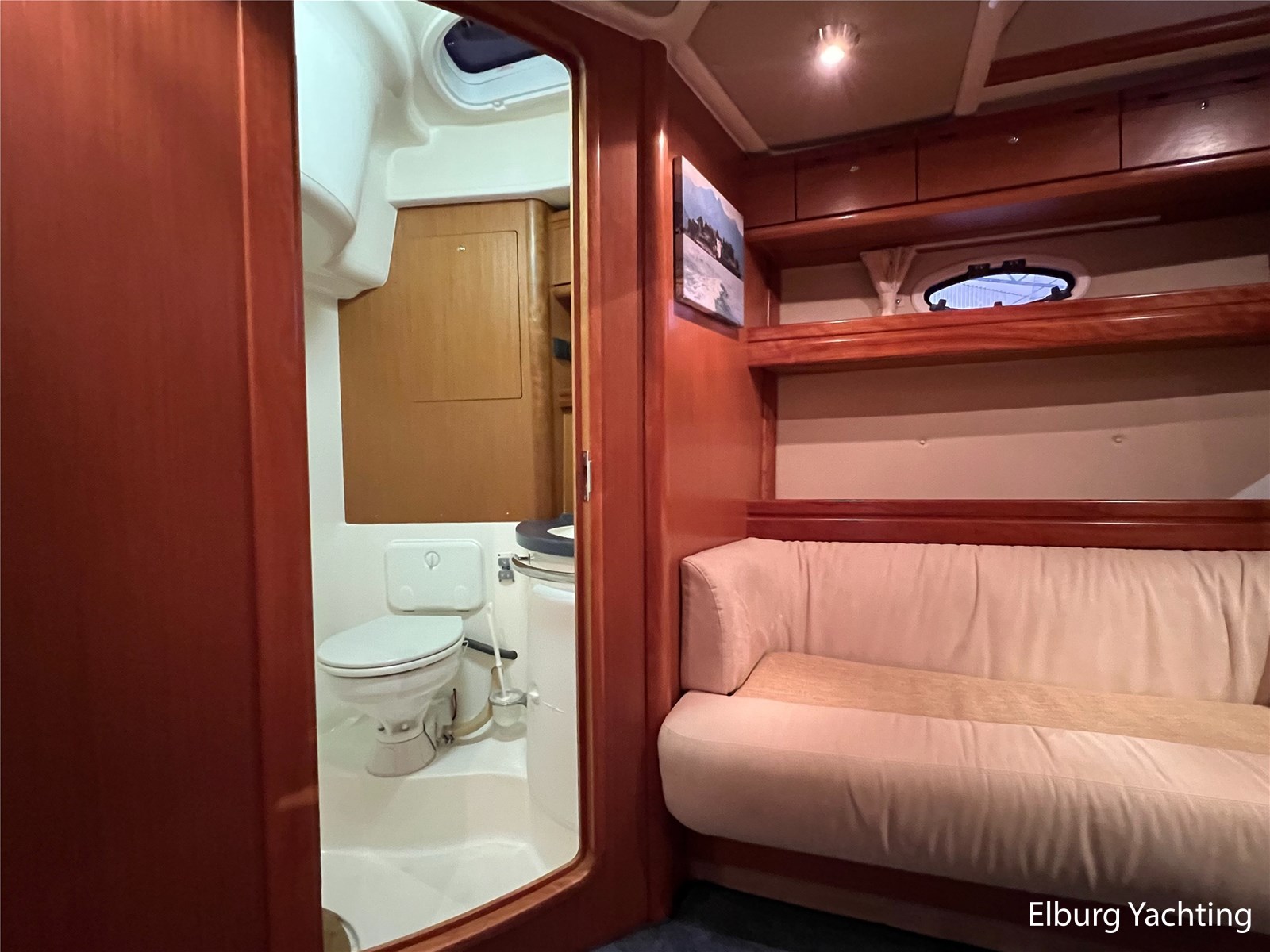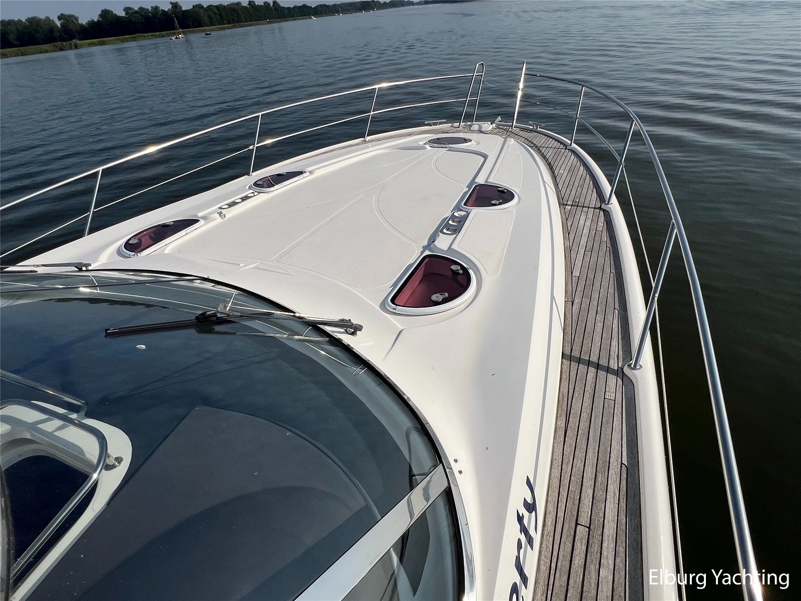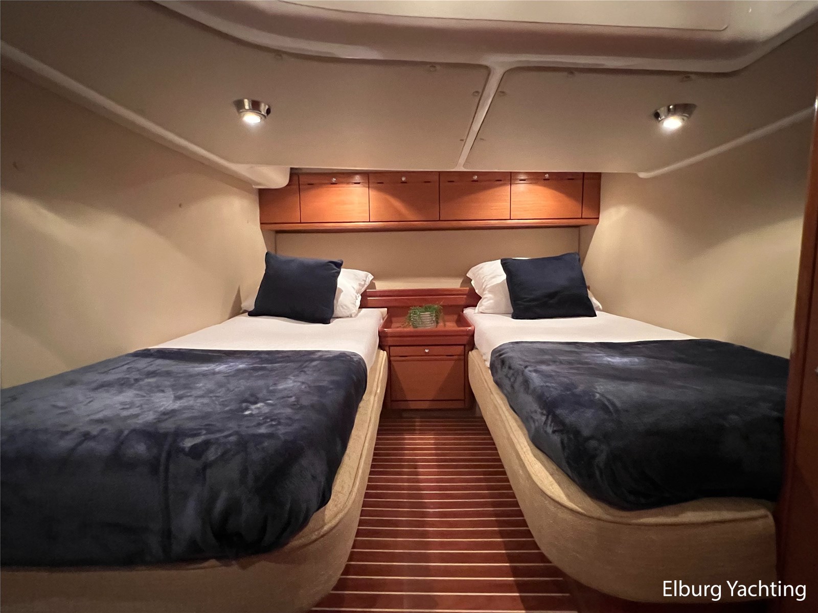 De Bavaria 42 HT Sport is door een combinatie van veel praktische ruimte en goede vaareigenschappen een sportieve allrounder voor zowel binnenwateren als op het grote water. De Bavaria 42 HT kenmerkt zich door de vast opbouw met een groot elektrisch bedienbaar cabriodak, ideaal om te genieten van het mooie weer of prettig afsluitbaar bij mindere weersomstandigheden. Het volledige achterdek is afsluitbaar met een tent met grote uitritsbare zichtvensters. Het zwemplateau is hydraulisch afzinkbaar, handig voor het meenemen van een bijboot of gemakkelijk voor het op- en afstappen bij het zwemmen. Op het achterdek bevindt zich een zonnebed met een ruim onderliggende bergruimte. De machinekamer is bereikbaar vanuit de kuip met een elektrisch bedienbaar luik. Een meevaarbank is in de vaarrichting geplaatst. In de kuip biedt de wetbar een grillplaat, spoelbak en koelkast. Benedendeks bevindt zich de salon en kombuis. De stahoogte van 2m+ valt direct op en geeft een ruimtelijk gevoel. In de voorhut is een 2 persoons frans bed gesitueerd met eigen sanitair (toilet/douche) en-suite. Een tweede 2-persoonshut bevindt zich midscheeps, tevens voorzien van eigen sanitair en-suite. In 2025 zijn diverse vernieuwingen doorgevoerd, waaronder nieuwe antifouling, anodes, zwemvesten, een draadloos headset intercomsysteem, nieuwe fenders met hoezen, RVS bij bootsteunen (ook geschikt voor jetski), een wifi-installatie, twee smart TV’s, een Bluetooth radio, op maat gemaakte matrassen en een druppellader. Voor vragen en/of het maken van een afspraak bent u 7 dagen per week van harte welkom bij Elburg Yachting.