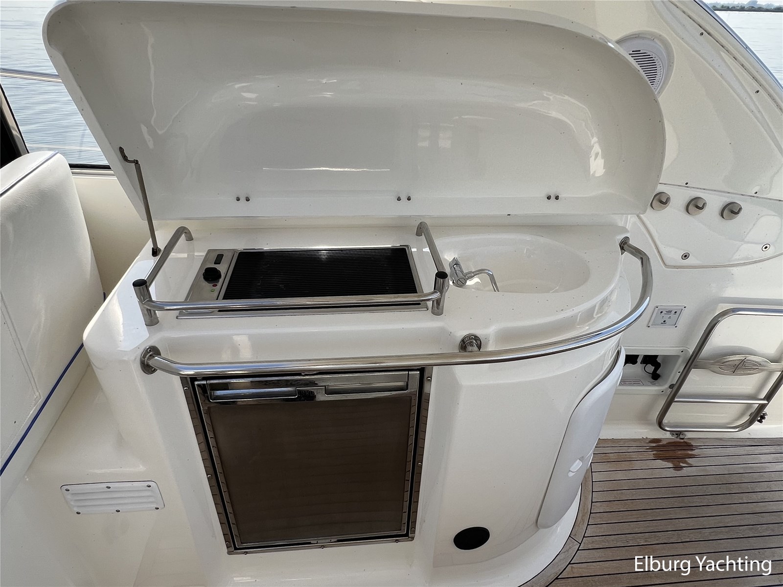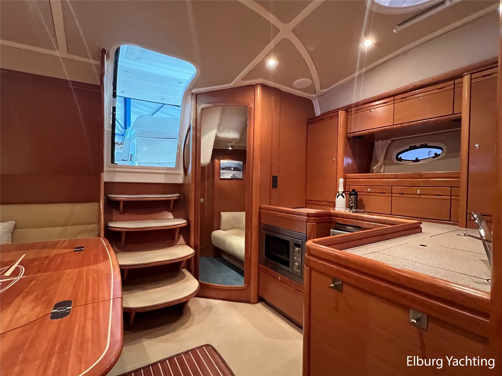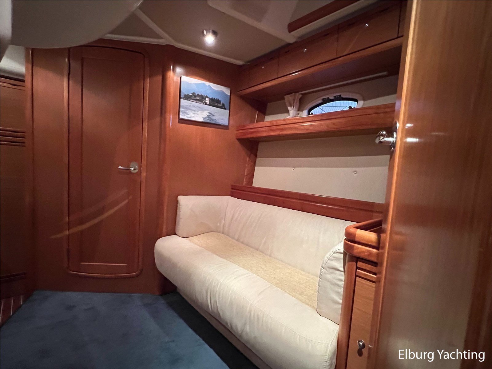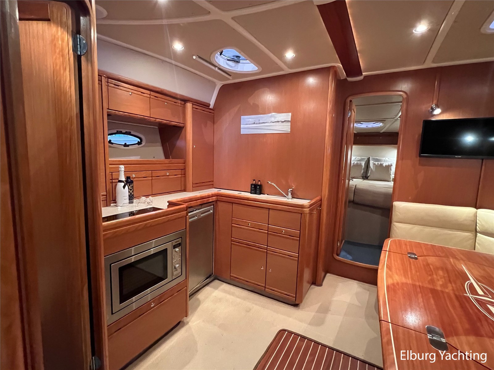 De Bavaria 42 HT Sport is door een combinatie van veel praktische ruimte en goede vaareigenschappen een sportieve allrounder voor zowel binnenwateren als op het grote water. De Bavaria 42 HT kenmerkt zich door de vast opbouw met een groot elektrisch bedienbaar cabriodak, ideaal om te genieten van het mooie weer of prettig afsluitbaar bij mindere weersomstandigheden. Het volledige achterdek is afsluitbaar met een tent met grote uitritsbare zichtvensters. Het zwemplateau is hydraulisch afzinkbaar, handig voor het meenemen van een bijboot of gemakkelijk voor het op- en afstappen bij het zwemmen. Op het achterdek bevindt zich een zonnebed met een ruim onderliggende bergruimte. De machinekamer is bereikbaar vanuit de kuip met een elektrisch bedienbaar luik. Een meevaarbank is in de vaarrichting geplaatst. In de kuip biedt de wetbar een grillplaat, spoelbak en koelkast. Benedendeks bevindt zich de salon en kombuis. De stahoogte van 2m+ valt direct op en geeft een ruimtelijk gevoel. In de voorhut is een 2 persoons frans bed gesitueerd met eigen sanitair (toilet/douche) en-suite. Een tweede 2-persoonshut bevindt zich midscheeps, tevens voorzien van eigen sanitair en-suite. In 2025 zijn diverse vernieuwingen doorgevoerd, waaronder nieuwe antifouling, anodes, zwemvesten, een draadloos headset intercomsysteem, nieuwe fenders met hoezen, RVS bij bootsteunen (ook geschikt voor jetski), een wifi-installatie, twee smart TV’s, een Bluetooth radio, op maat gemaakte matrassen en een druppellader. Voor vragen en/of het maken van een afspraak bent u 7 dagen per week van harte welkom bij Elburg Yachting.