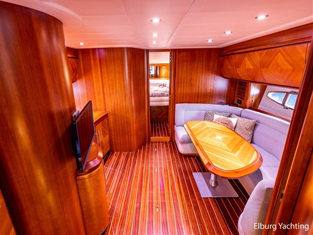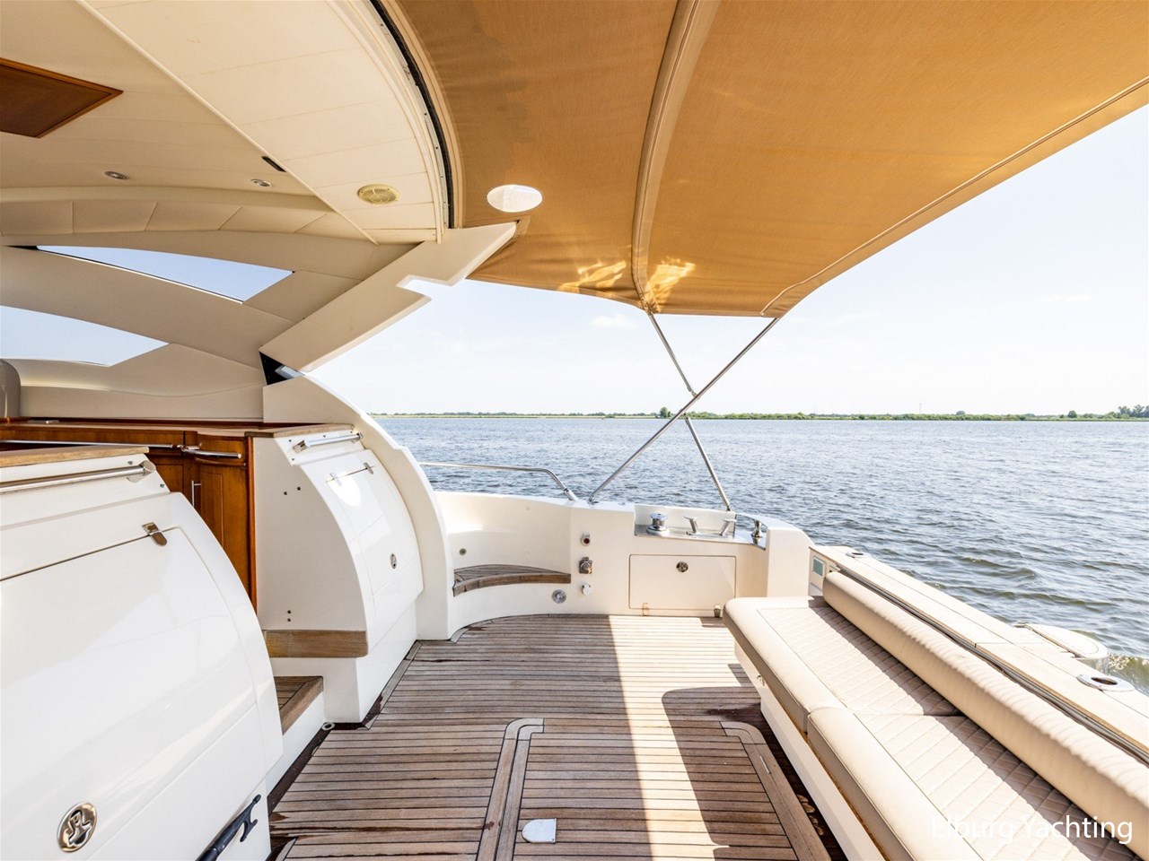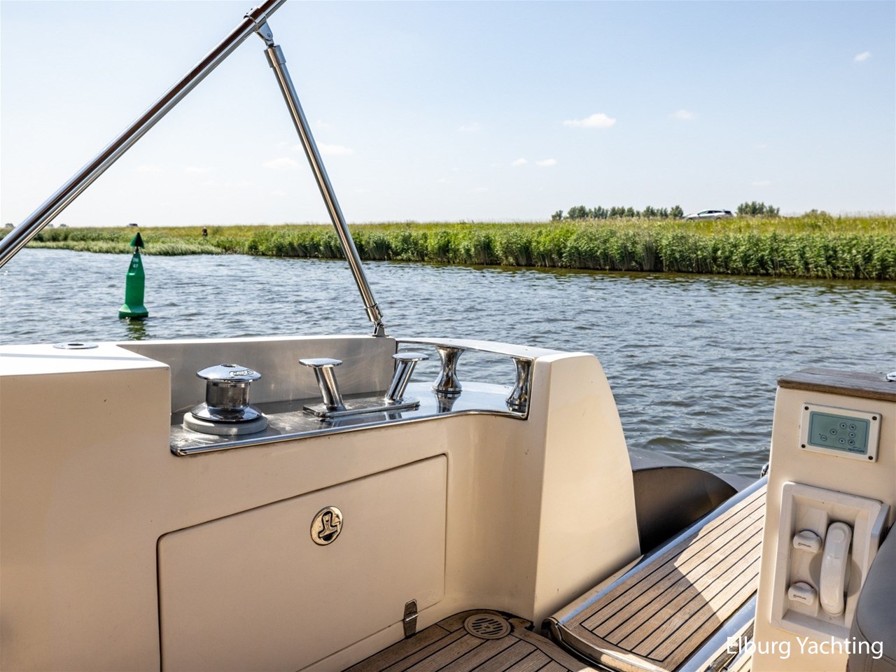 - Antislip op zijdek + teak in open kuip en stuurhuis