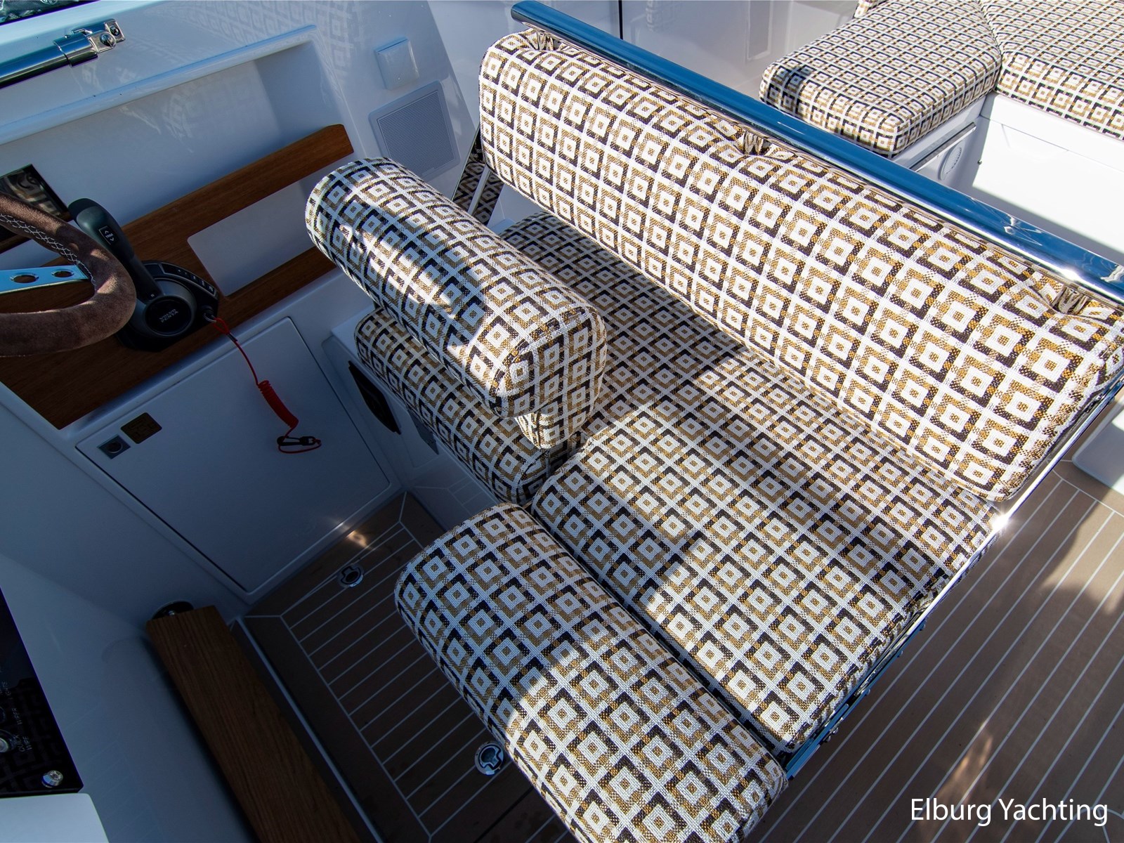 Ook aan boord is comfort en vermaak uitstekend geregeld. Het Fusion-audiosysteem met extra speakers en subwoofer levert hoogwaardige geluidskwaliteit, terwijl USB- en 12V-aansluitingen bij zowel de stuurstand als de kajuit zorgen dat al uw apparaten opgeladen blijven. De interieur- en zitbekleding is voorzien van een upgrade, waardoor het aan boord extra stijlvol en comfortabel is.