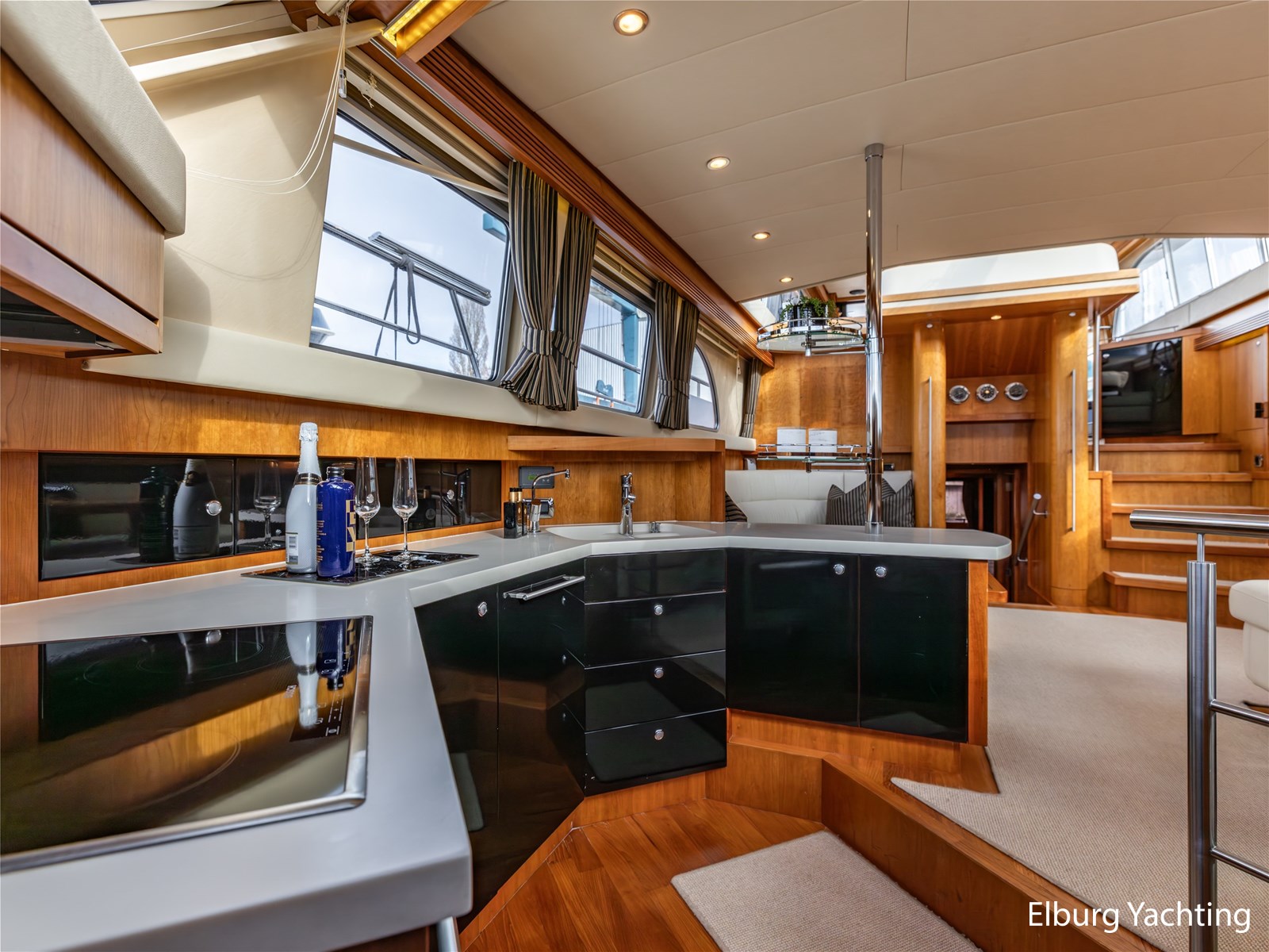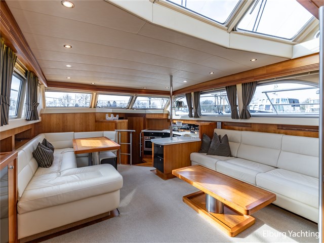 Valk Continental 1900 staat voor luxe, ruimte en comfort aan boord. Aan boord van deze Valk Continental 1900 ervaart u een uitzonderlijk gevoel van ruimte en verbinding met het buitenleven. De grote stuurhut vormt het hart van het jacht, met de stuurstand voorin en een gezellige dinette direct daarachter. Dankzij het uitstekende zicht rondom is dit een ideale plek tijdens het varen én bij verblijf aan boord. Vierdelige RVS deuren verbinden het achterdek naadloos met de stuurhut. Dankzij het cabriodak en twee schuiframen vaart u met het gevoel van buiten, zelfs wanneer u binnen zit. De stuurhut is bovendien zeer compleet uitgerust: onder andere met Autopilot, radar, kaartplotter, camerasysteem, elektrisch zoeklicht, Hydronautica-afstandsbediening voor motor, boeg- en hekschroef, ruitenwissers met intervalstand, marifoon en andere accessoires. Alles is aanwezig voor ontspannen én veilig varen, ongeacht het vaargebied. Vanuit de stuurhut loopt u via een niveauverschil naar de ruime salon, uitgevoerd in teak met crème-witte lederen bekleding en royale lichtinval dankzij de grote ramen. De salon is sfeervol verlicht met ingebouwde LED-verlichting en uitgerust met een flatscreen-tv, zodat ontspanning aan boord gegarandeerd is. Aansluitend bevindt zich, een niveau lager, de volledig uitgeruste kombuis. Deze keuken is voorzien van een Corian werkblad, keramische kookplaat, afzuigkap, Bosch oven, combimagnetron en dubbele koelkast. Alles is aanwezig om aan boord volwaardig te kunnen koken en leven. De eigenaarshut achterin is bijzonder royaal en beslaat de volle breedte van het jacht. Deze luxe 'full beam' master cabin beschikt over een vrijstaand tweepersoonsbed, een badkamer en suite, ruime kastopstelling en een sfeervolle afwerking. Ook buitenom is het comfort volledig doorgevoerd. Het schip beschikt over een teakdek rondom en een groot zwemplateau met geïntegreerde gangway en verlichting. Een luie trap vanaf het achterdek maakt de toegang tot het zwemplateau extra comfortabel. Deze Valk Continental 1900 verkeert in bijzonder verzorgde staat. In de afgelopen periode zijn er diverse werkzaamheden uitgevoerd aan het jacht de lijst is op aanvraag beschikbaar, o.a. is er antislip op de dekken aangebracht, nieuwe marifoon, onderhoud motoren, Hydronautica afstandsbediening, polijsten van de romp. Voor vragen en/of het maken van een afspraak bent u 7 dagen per week van harte welkom bij Elburg Yachting.